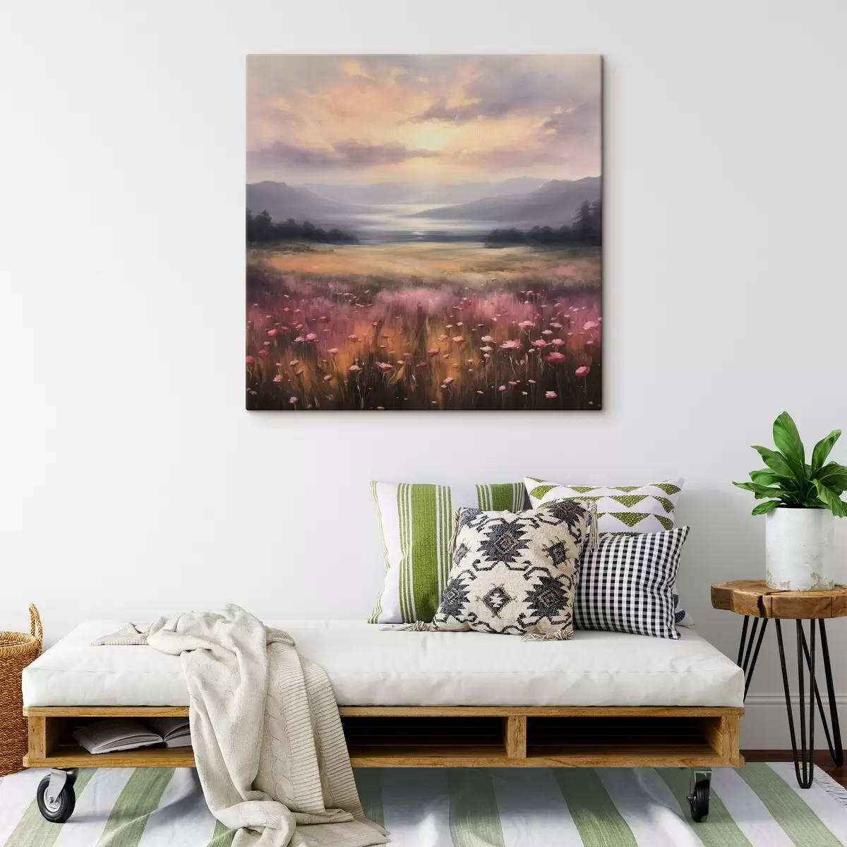 Glezna ir iekārtojama uzreiz pēc tās saņemšanas. Glezna tiks izstiepta uz 2 cm platām koka nestuvēm.