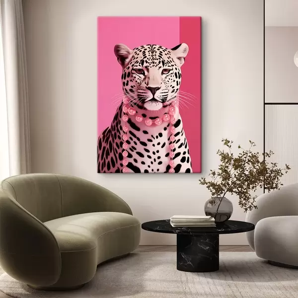 Glezna Leoparda portrets ar rozā kaklarotu Nr s43976
