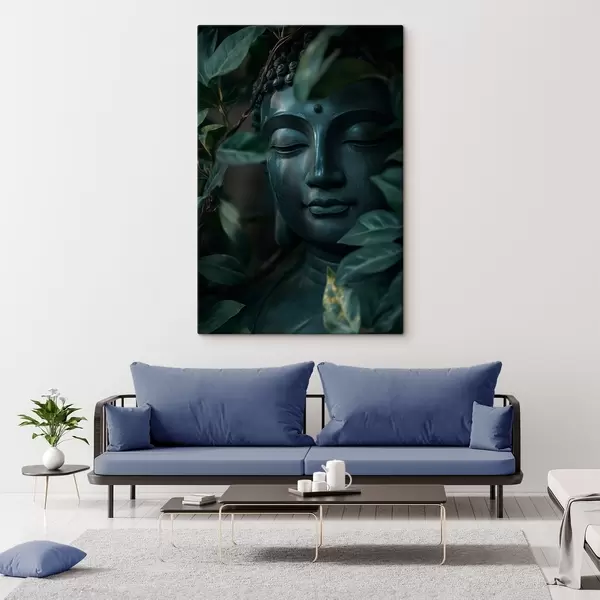 Glezna Zaļais Buda tropu lapās, reālisms Nr s44005