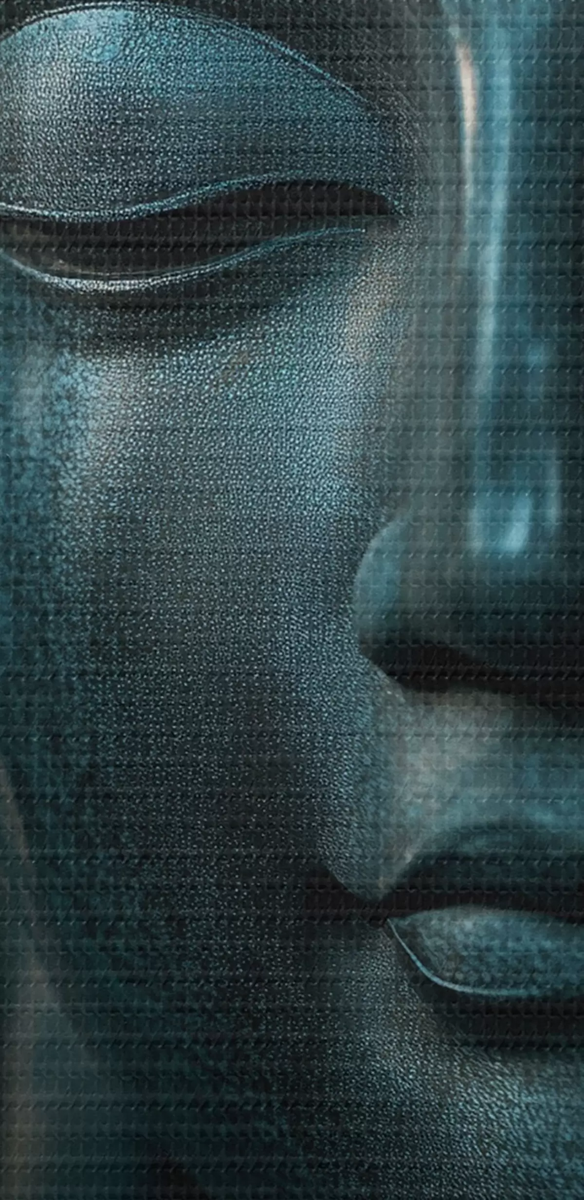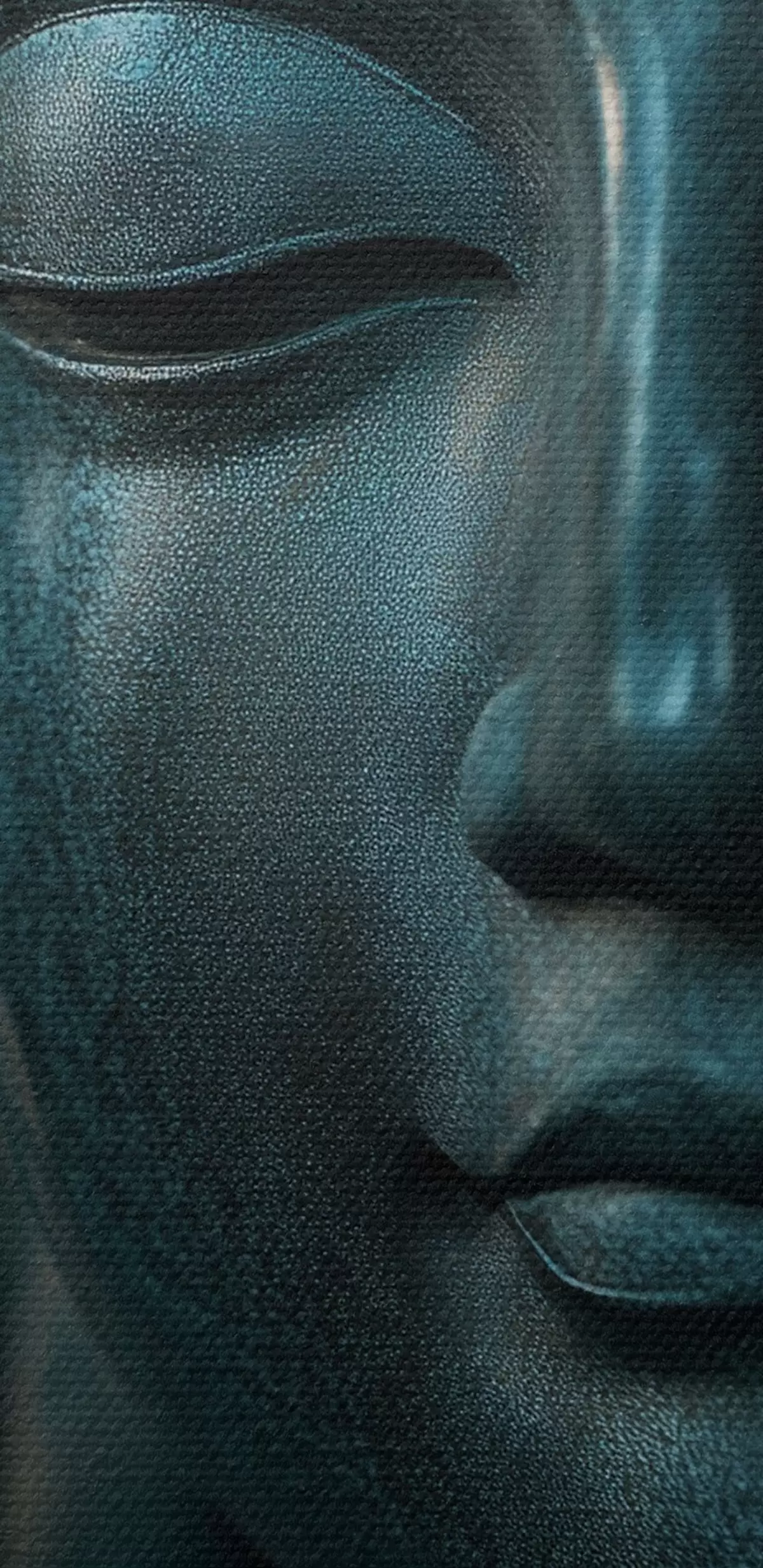 Glezna Zaļais Buda tropu lapās, reālisms s44005