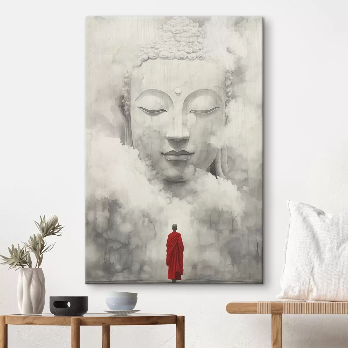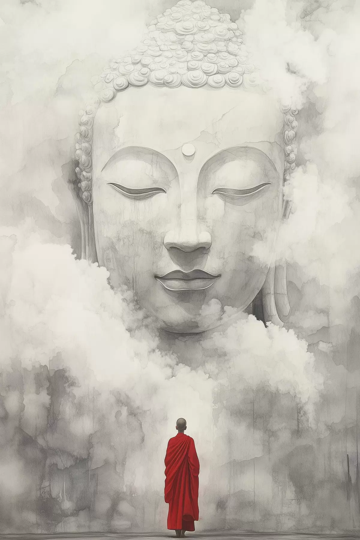 Glezna Budisms, mūks sarkanā tērpā, migla, akvareļu stils Nr s44007