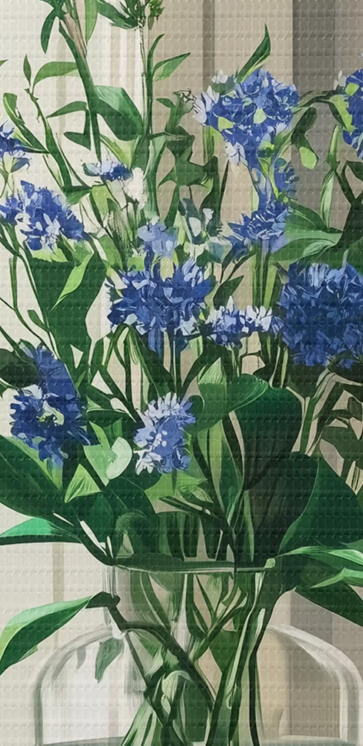 Smalkais diegu pinums uz šī audekla atgādina profesionālu mākslinieku audeklu virsmu.