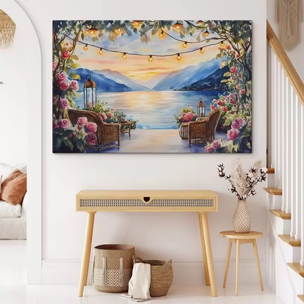 Glezna Skaists saulriets kalnos, ezers, rozes, boho stils Nr s44025