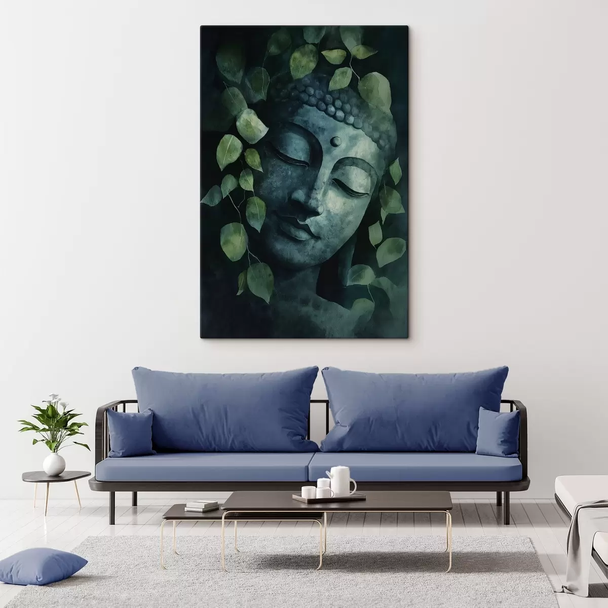 Glezna Buda ar aizvērtām acīm, meditācija, zaļas krāsas Nr s44030