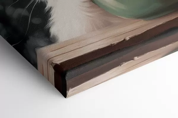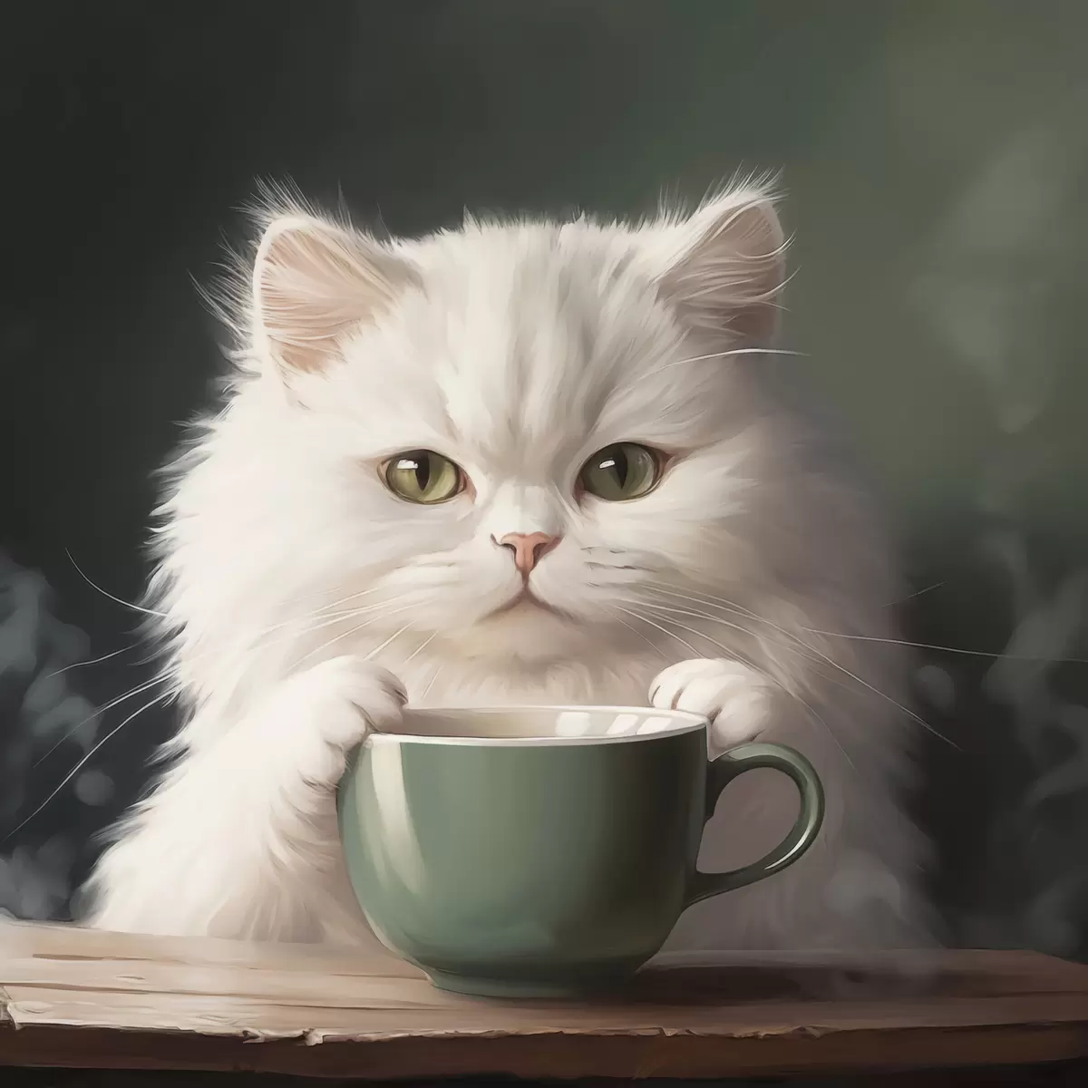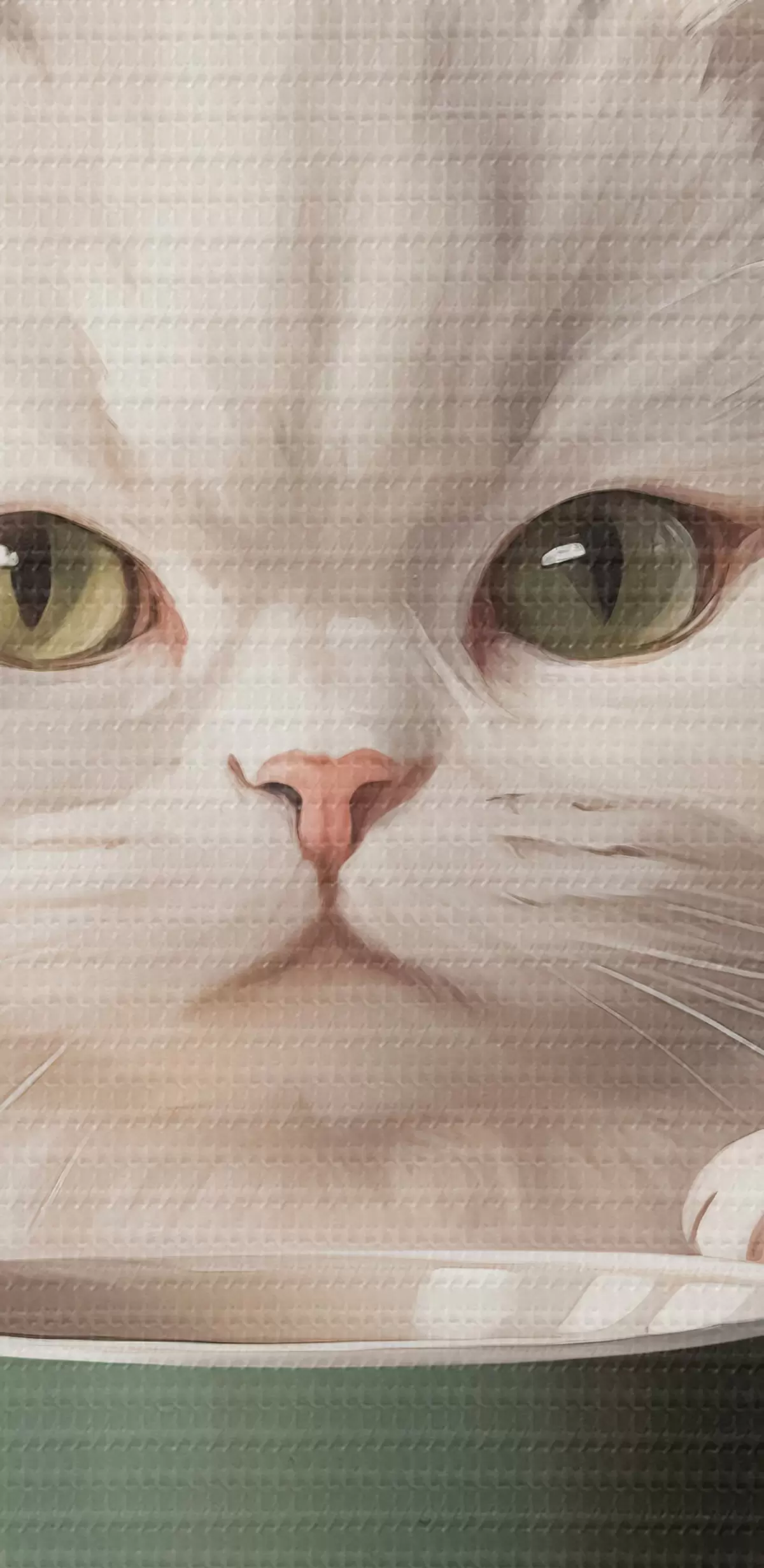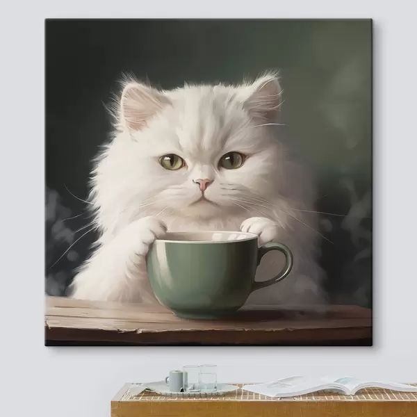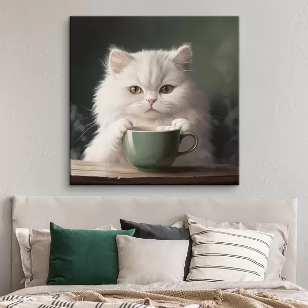 Glezna Balts kaķis ar zaļu kausu Nr s44032