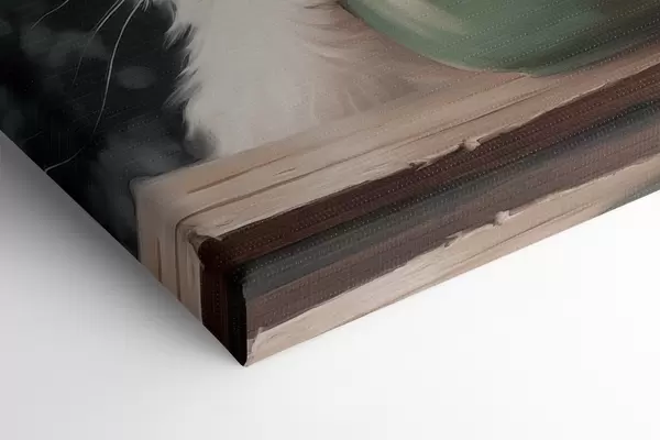 Glezna Balts kaķis ar zaļu kausu Nr s44032