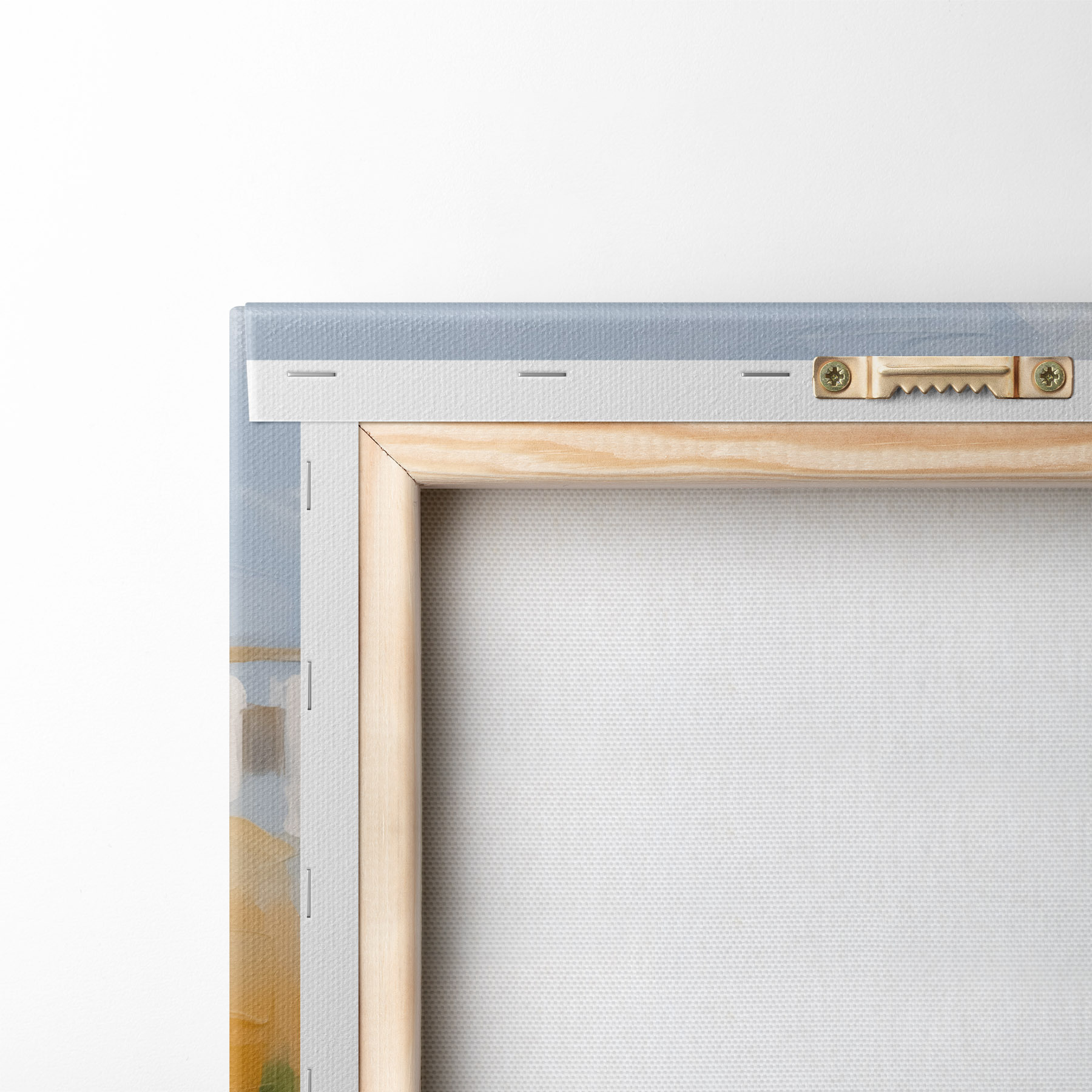 Glezna ir iekārtojama uzreiz pēc tās saņemšanas. Glezna tiks izstiepta uz 2 cm platām koka nestuvēm.