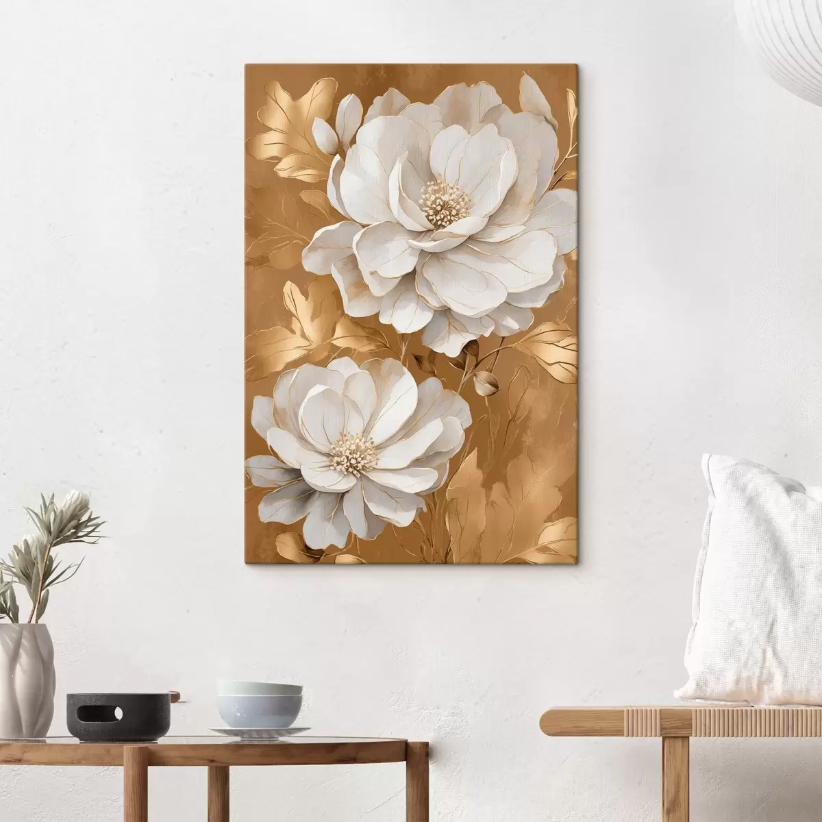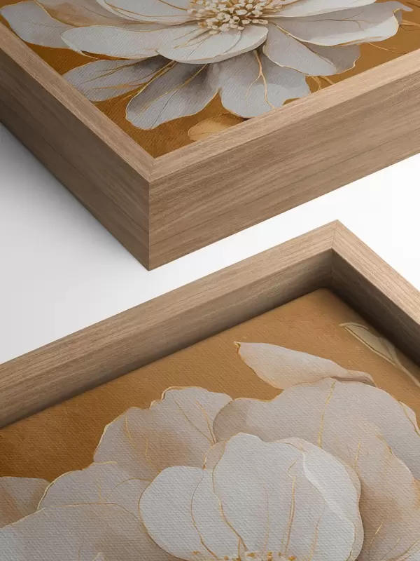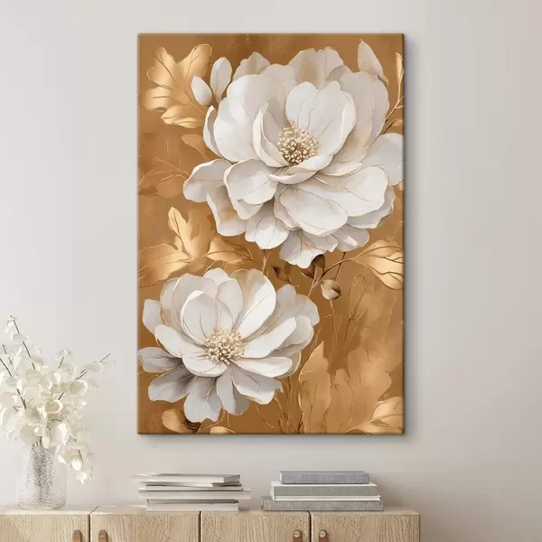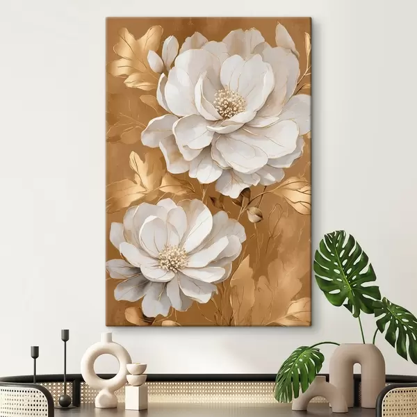 Glezna Balti ziedi uz dzeltena fona s44067