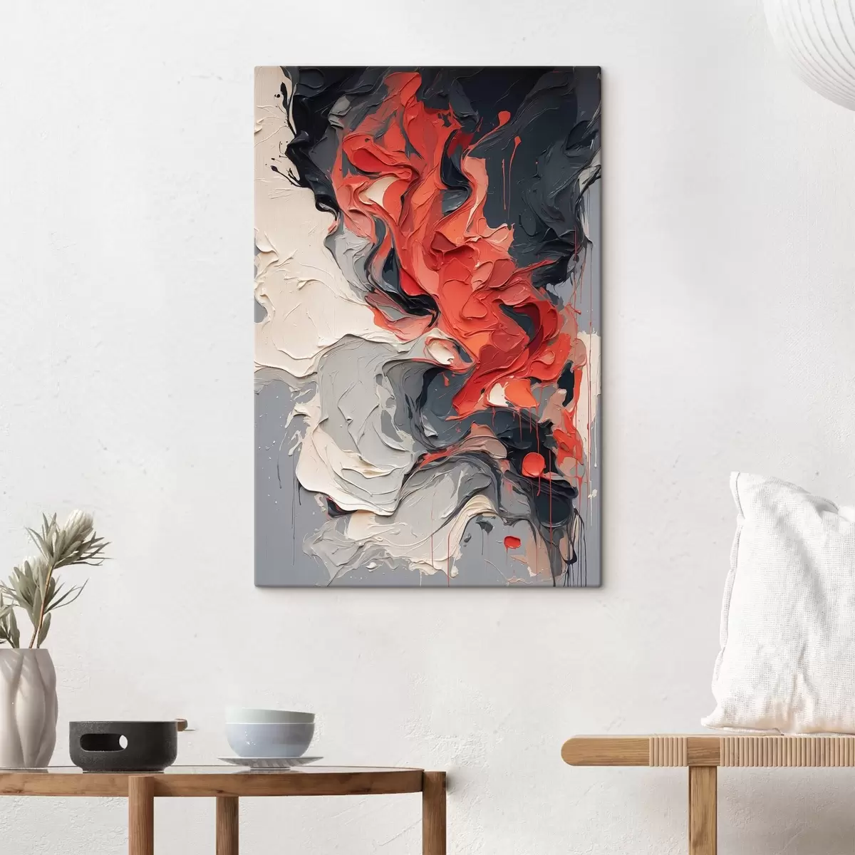 Glezna Abstraktā eļļas glezna sarkanā, melnā un pelēkā krāsā s44079