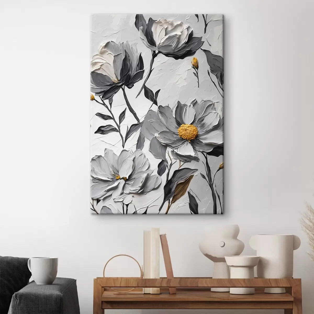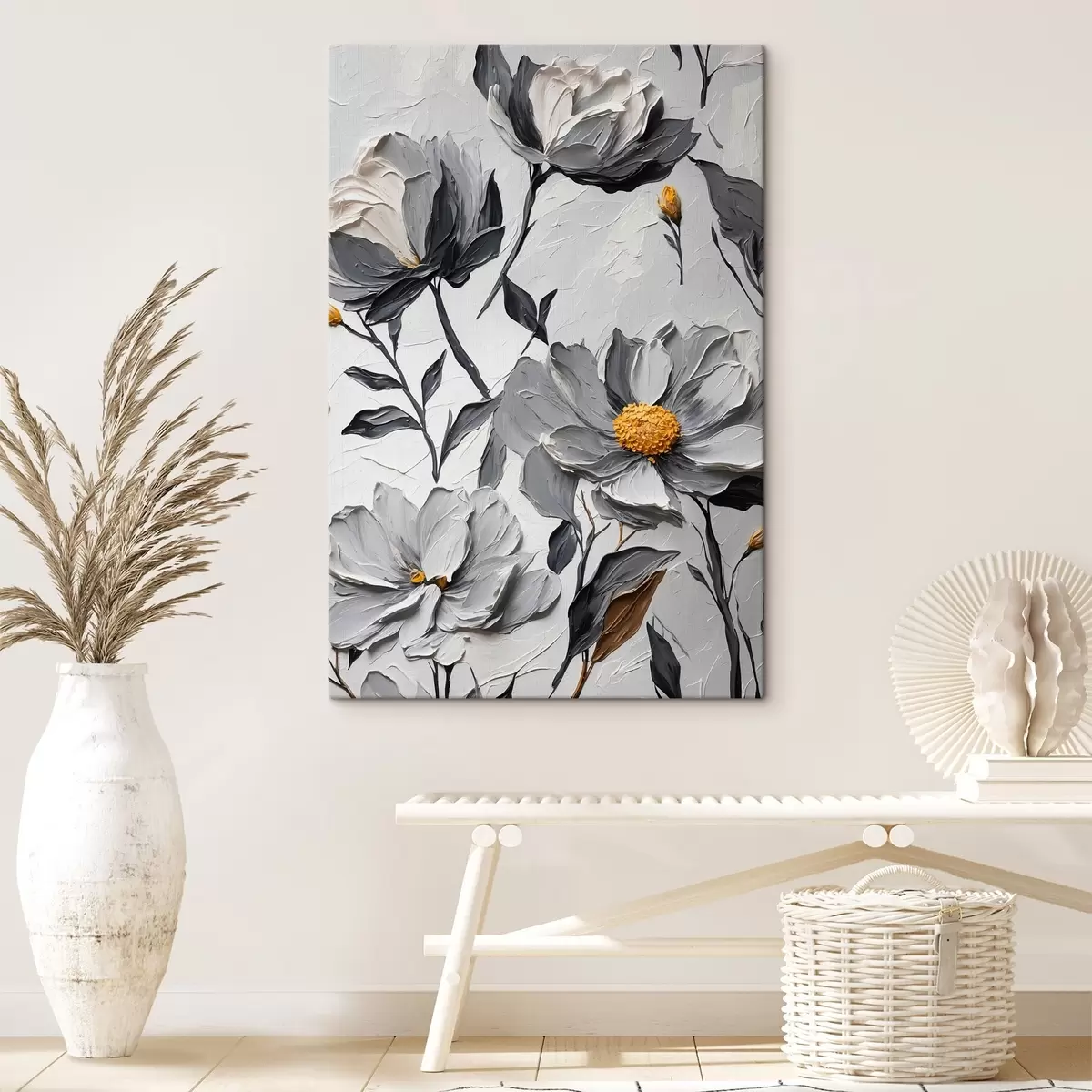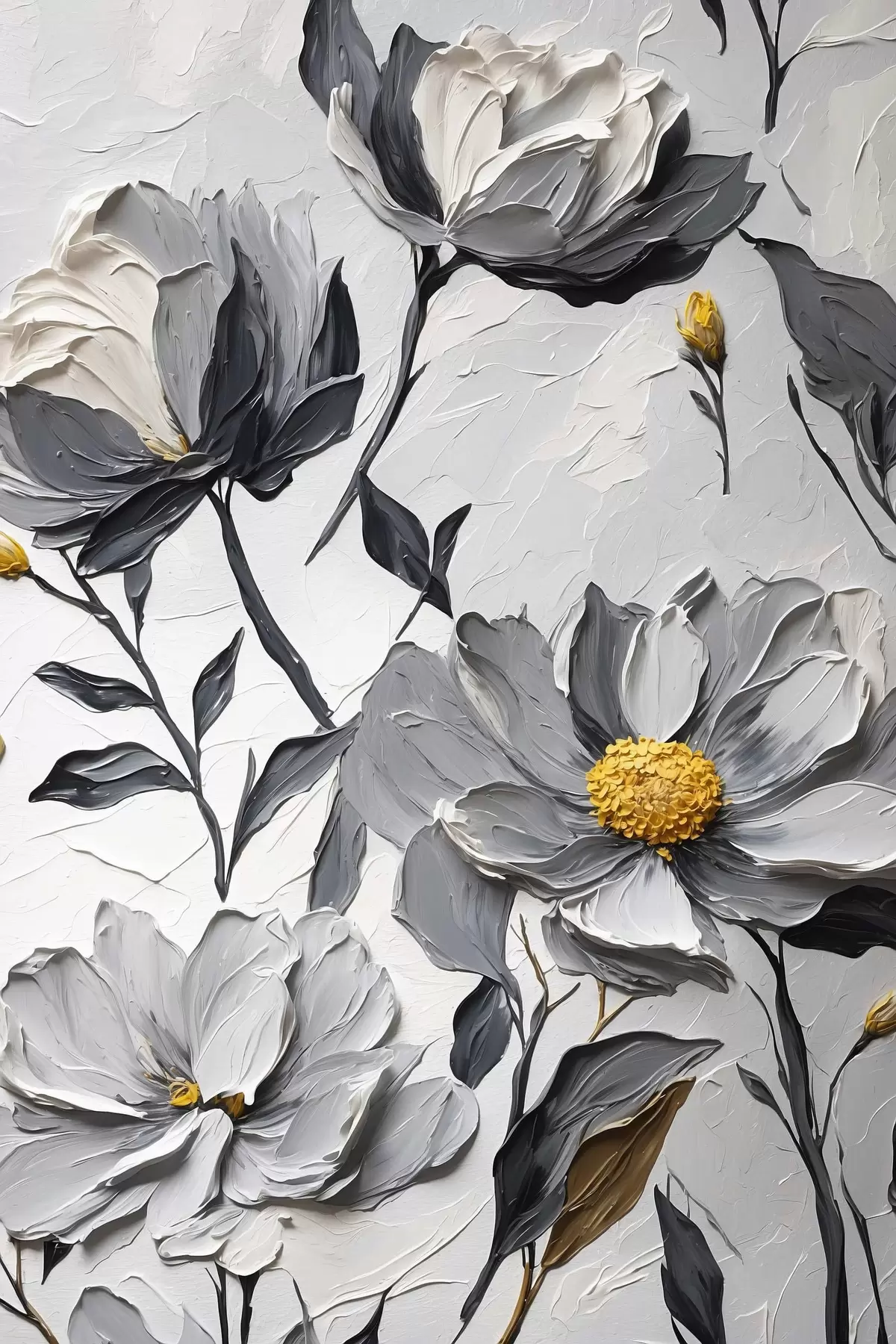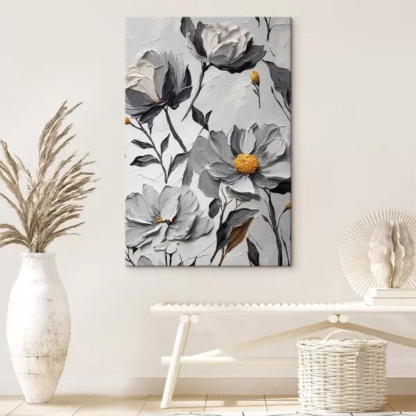 Glezna Pelēki ziedi uz pelēka fona eļļas gleznošanas stilā s44080
