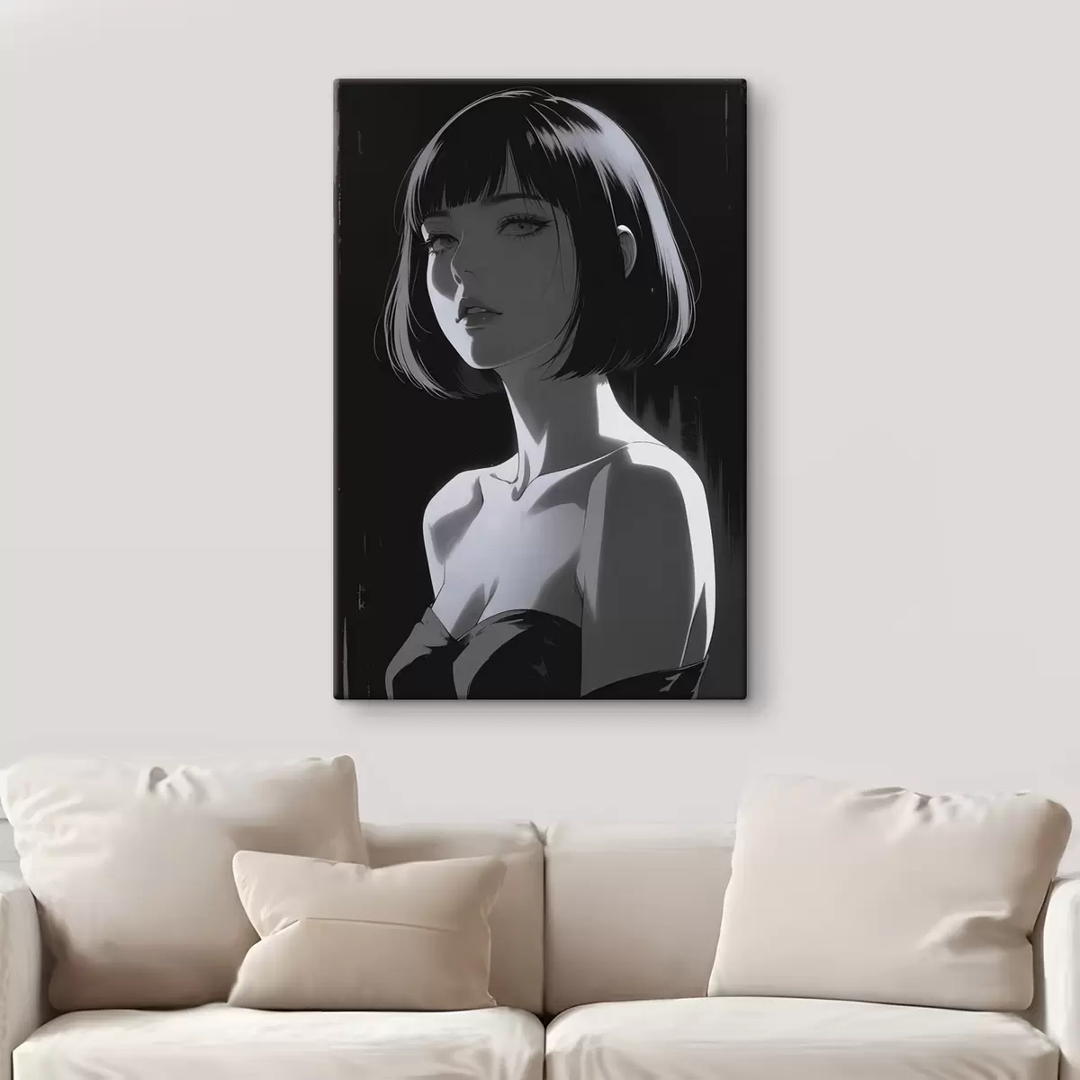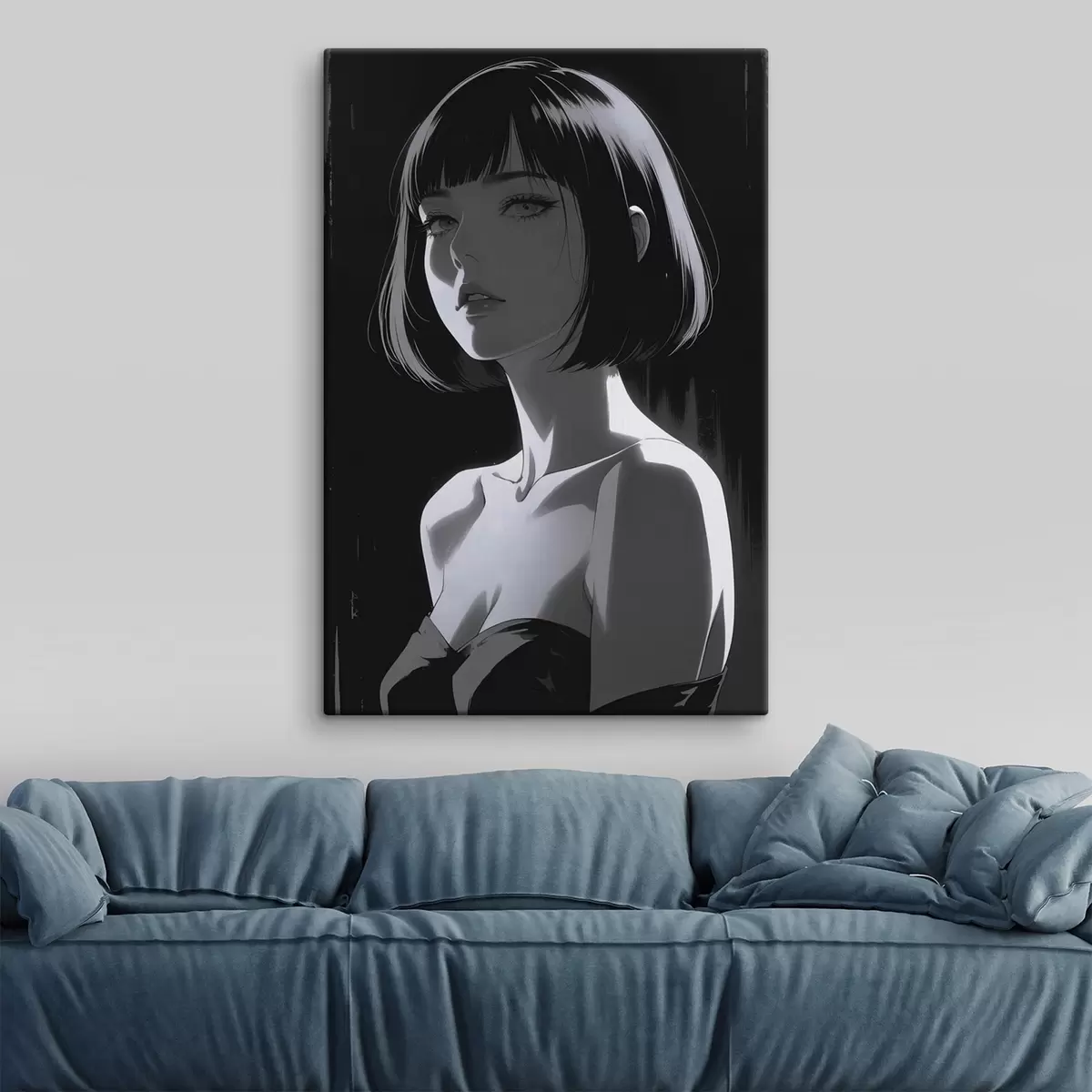 Glezna Plakāts ar meiteni uz melna fona Nr s44103
