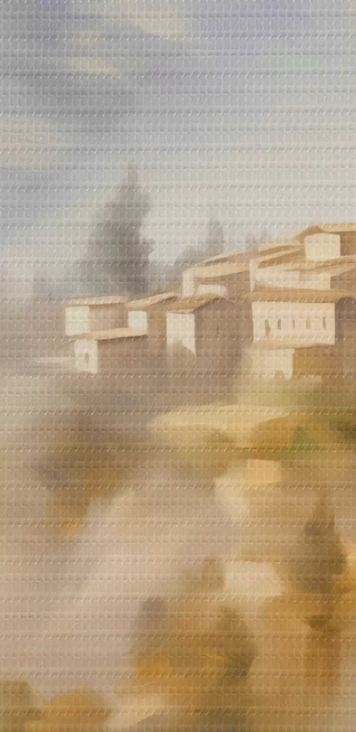 Smalkais diegu pinums uz šī audekla atgādina profesionālu mākslinieku audeklu virsmu.