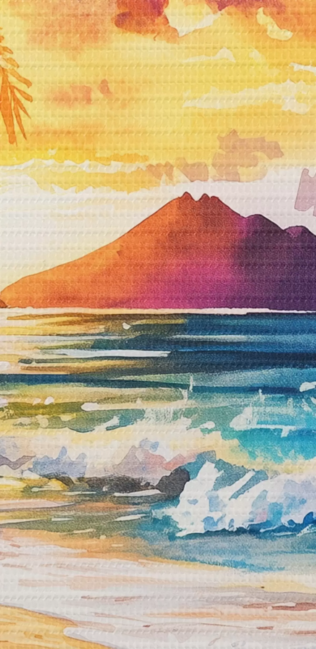 Glezna Saulriets Havaju salās, palmas, okeāns, krāsainas debesis, akvareļu stilā s44142