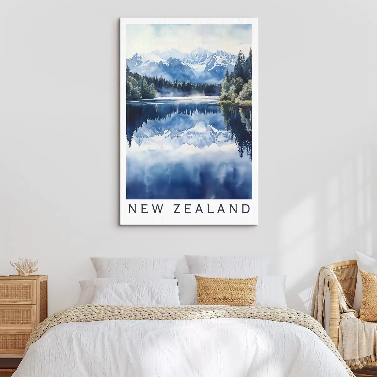 Glezna Skaisti kalni Jaunzēlandē, akvareļu stilā, ezers, mežs Nr s44144