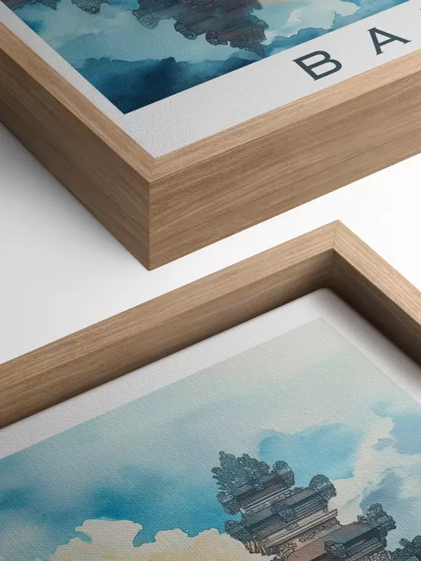 Glezna Bali estētika, templis, saulrieta debesis, tropu daba, akvareļu stils Nr s44149
