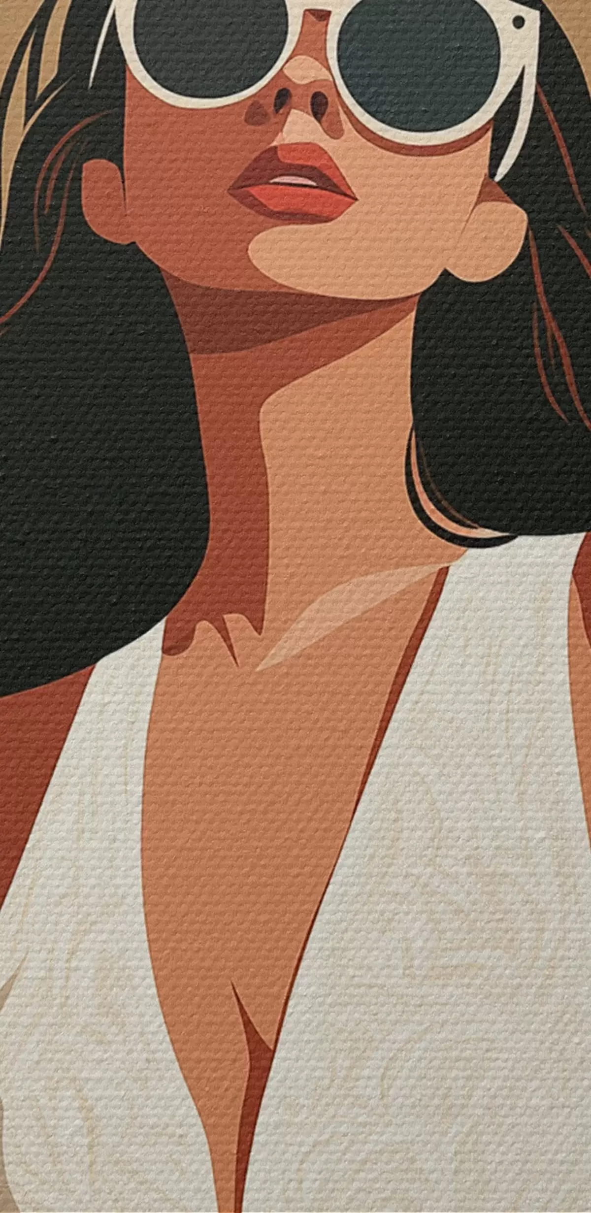 Glezna Sieviete ar saulesbrillēm un cepuri, tropu daba, arhitektūra  s44152