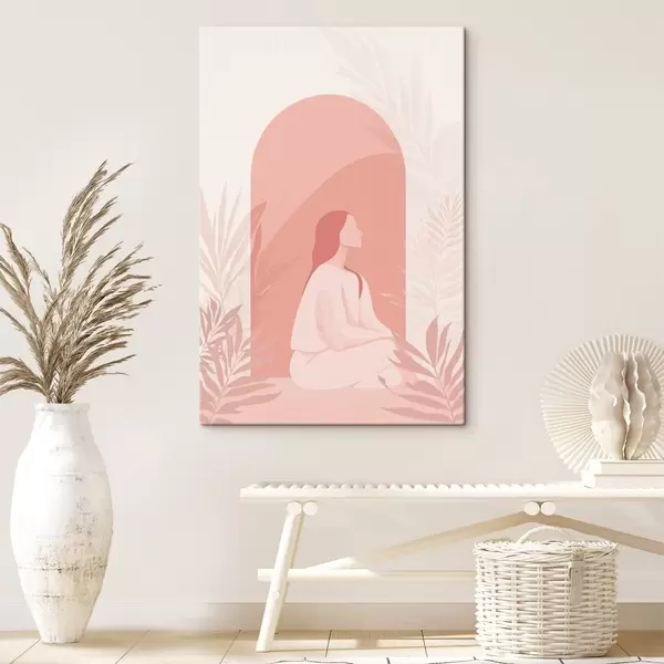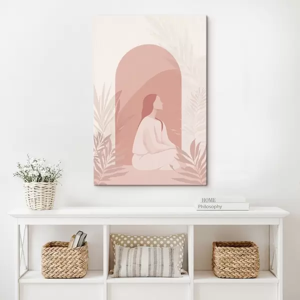Glezna Sieviete meditācijā, plakans stils, tropu augi, rozā krāsas Nr s44154