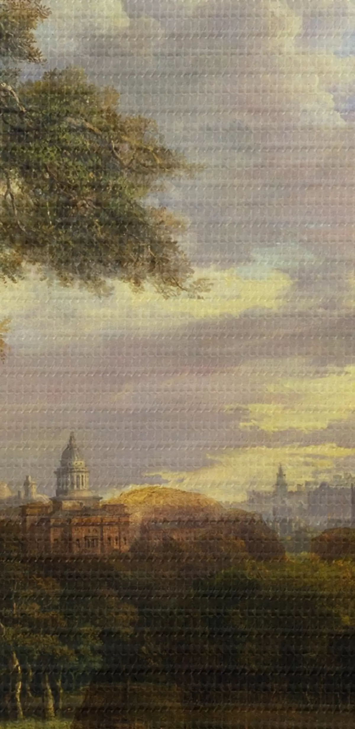 Smalkais diegu pinums uz šī audekla atgādina profesionālu mākslinieku audeklu virsmu.