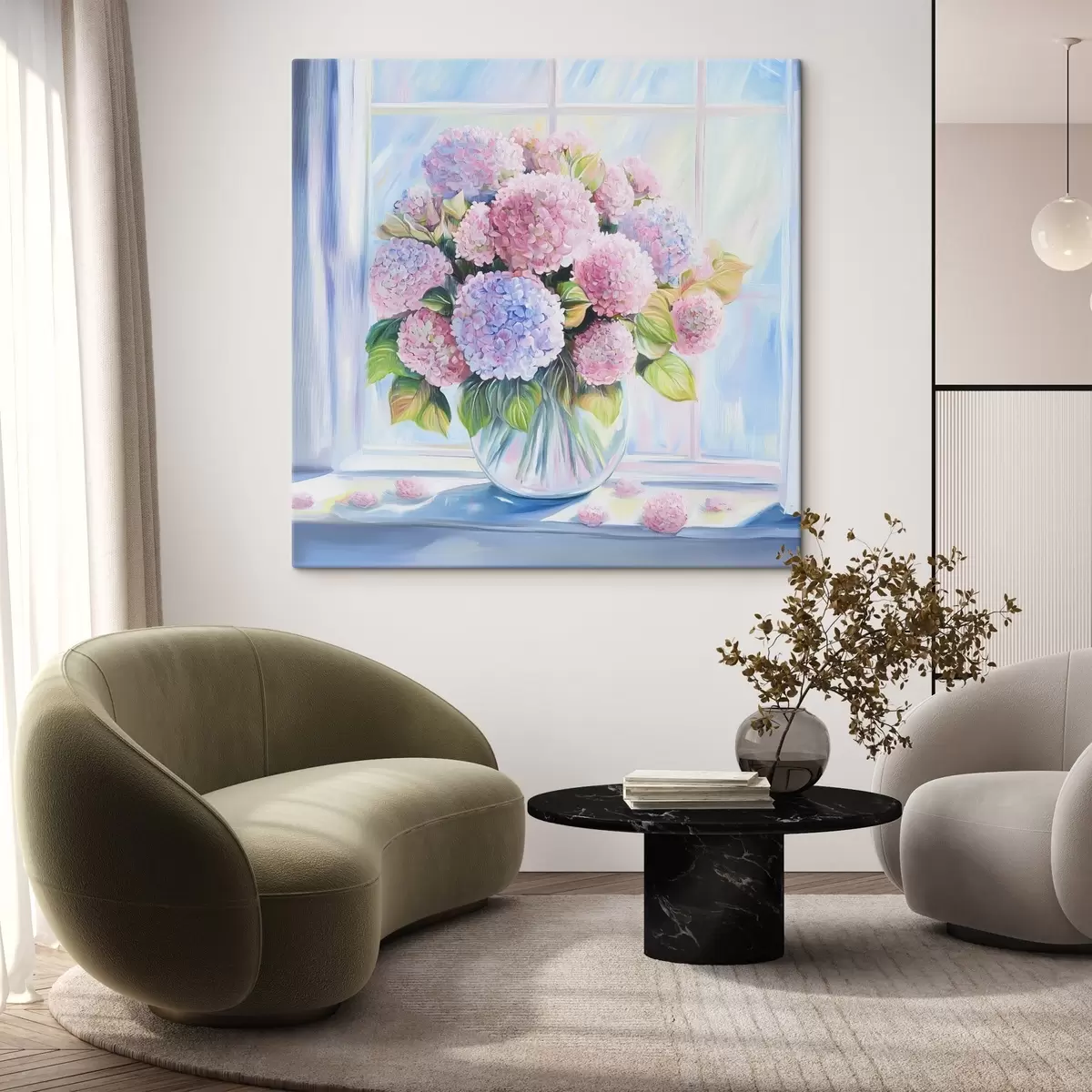 Glezna ir iekārtojama uzreiz pēc tās saņemšanas. Glezna tiks izstiepta uz 2 cm platām koka nestuvēm.