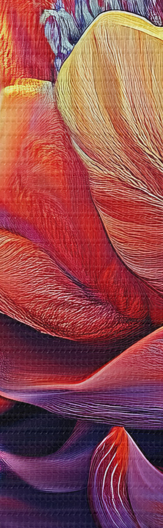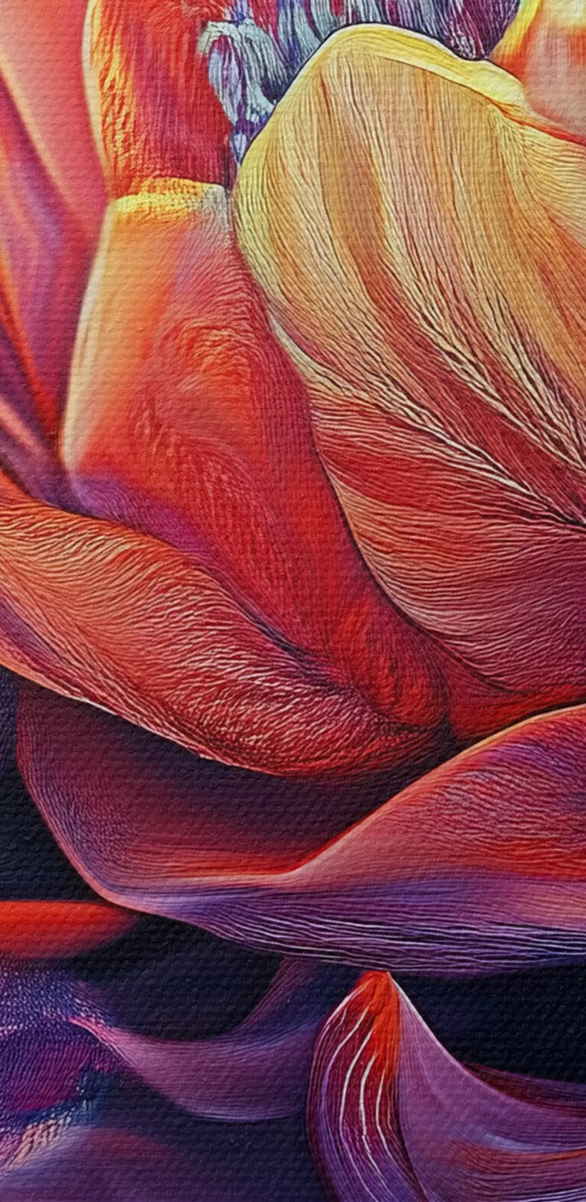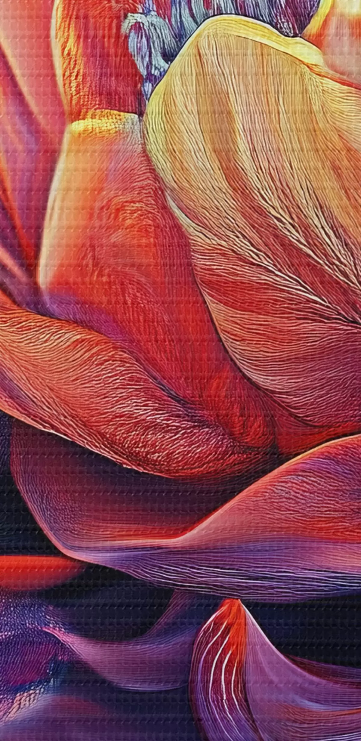 Smalkais diegu pinums uz šī audekla atgādina profesionālu mākslinieku audeklu virsmu.