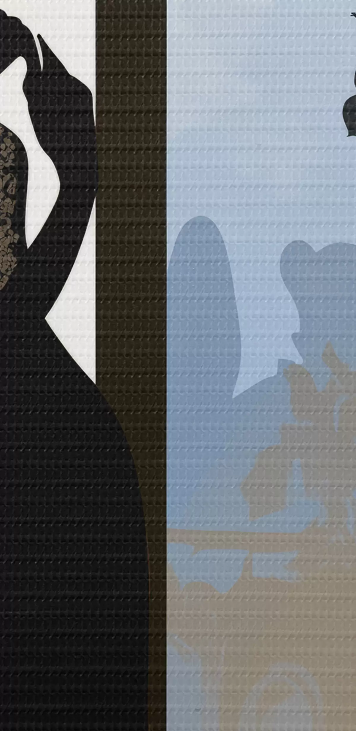 Lai izstieptu audeklu uz nestuvēm, nebojājot attēlu, mēs izmantojam spoguļattēlu.