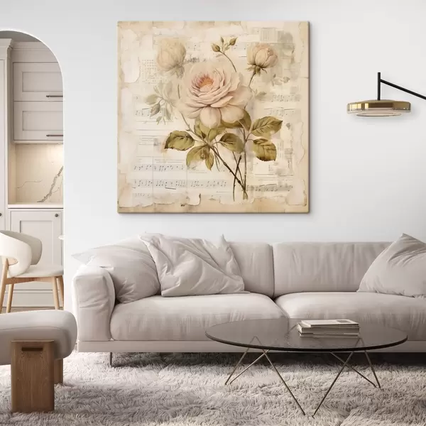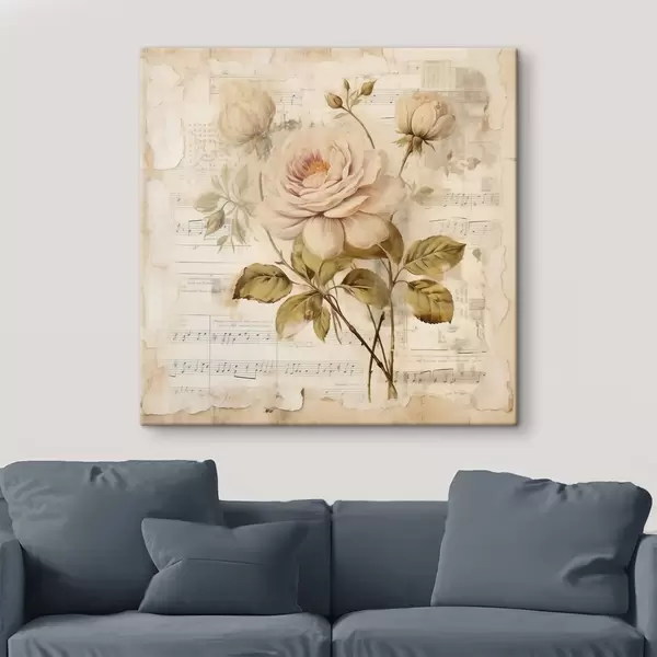 Glezna Veclaicīga rožu kompozīcija uz vecu piezīmju fona s44247