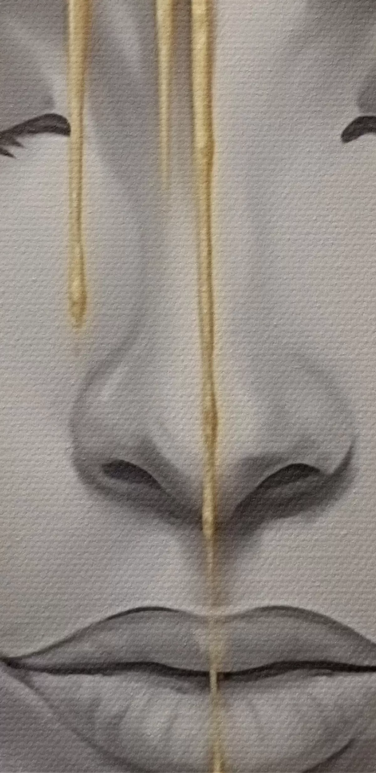 Smalkais diegu pinums uz šī audekla atgādina profesionālu mākslinieku audeklu virsmu.