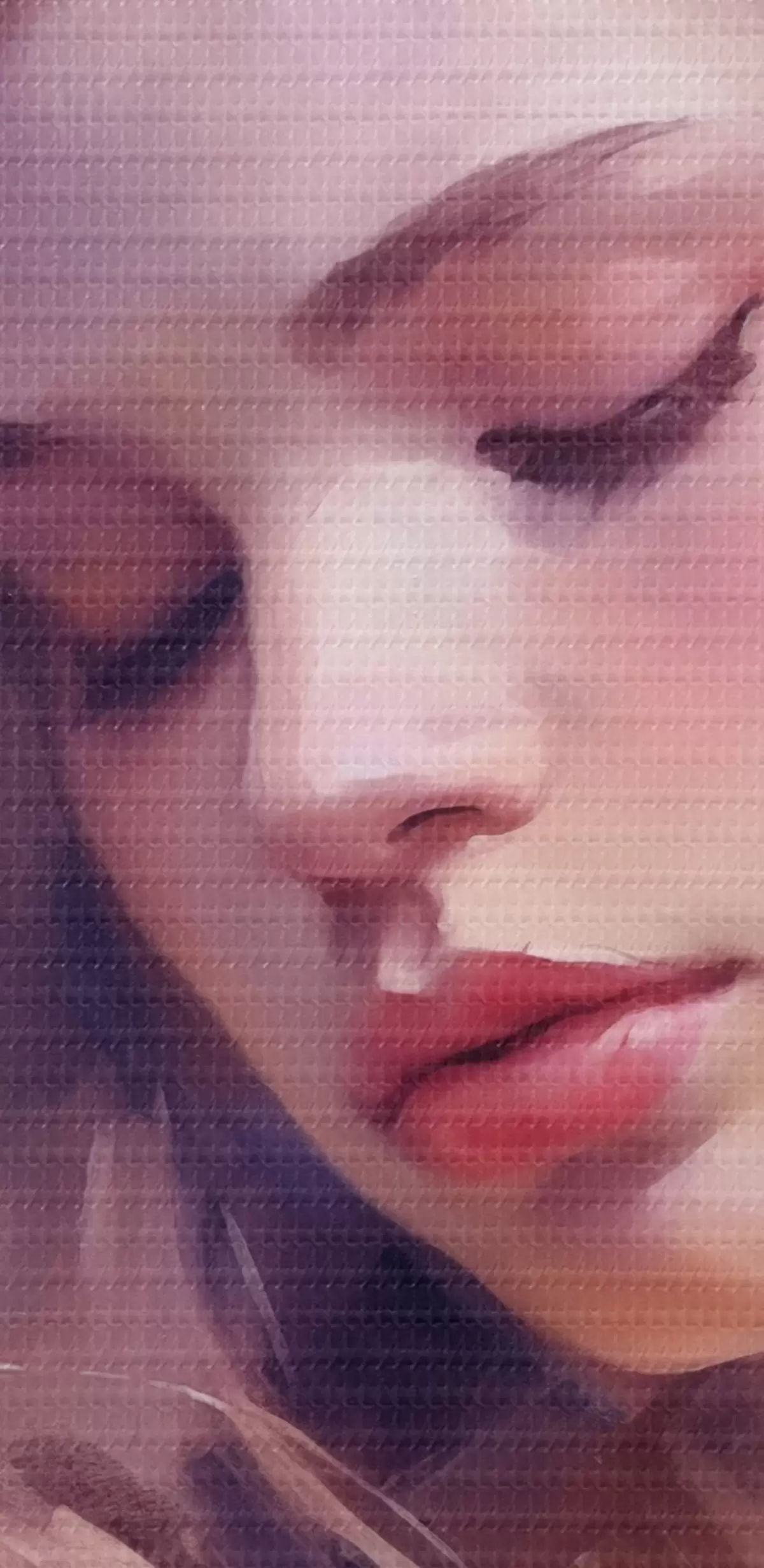 Smalkais diegu pinums uz šī audekla atgādina profesionālu mākslinieku audeklu virsmu.