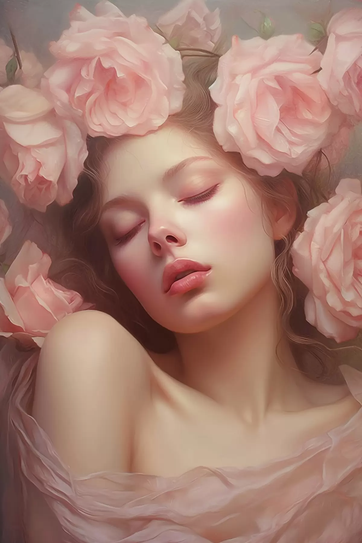 Glezna Meitene ziedos s44270