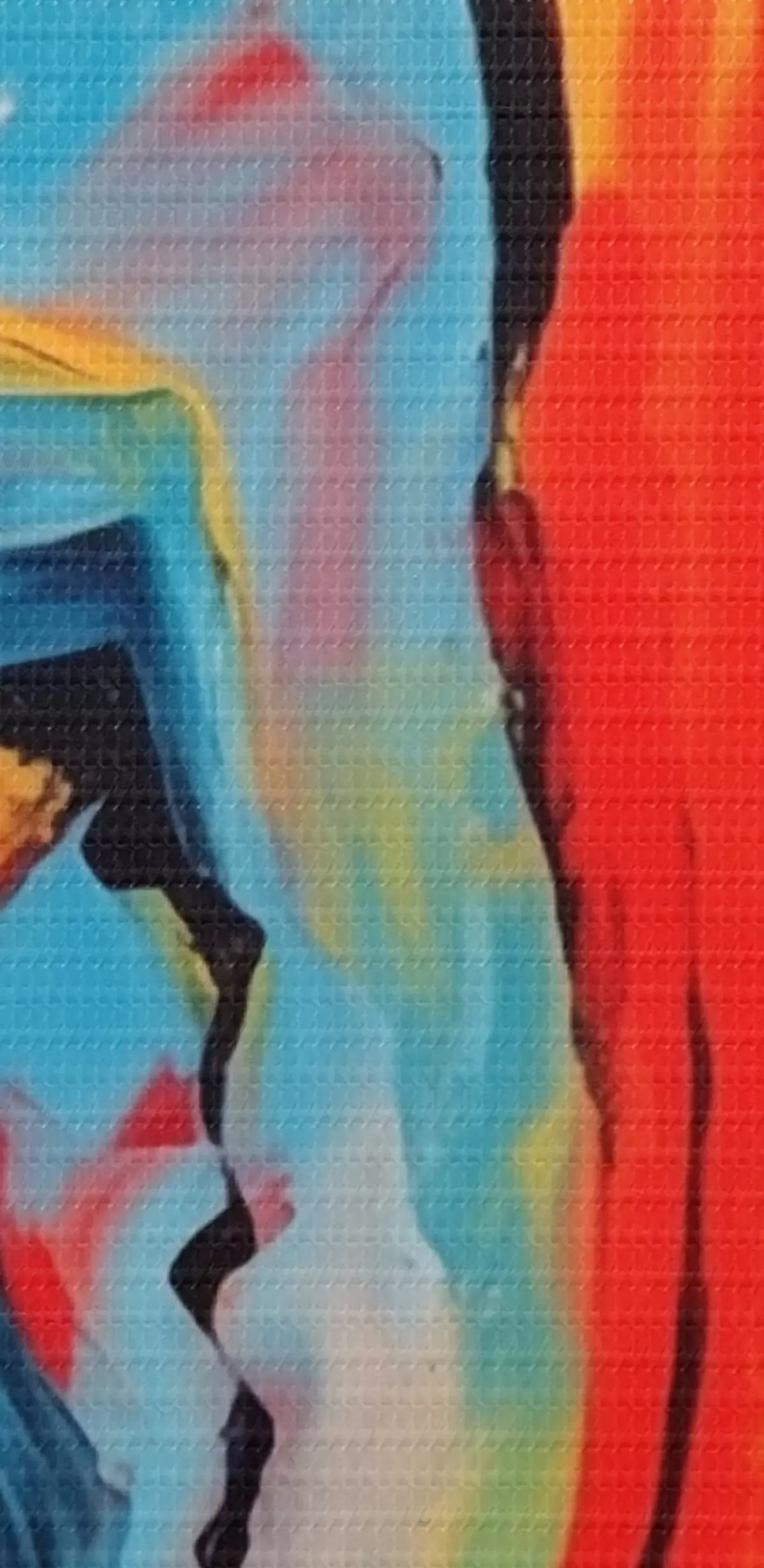 Smalkais diegu pinums uz šī audekla atgādina profesionālu mākslinieku audeklu virsmu.