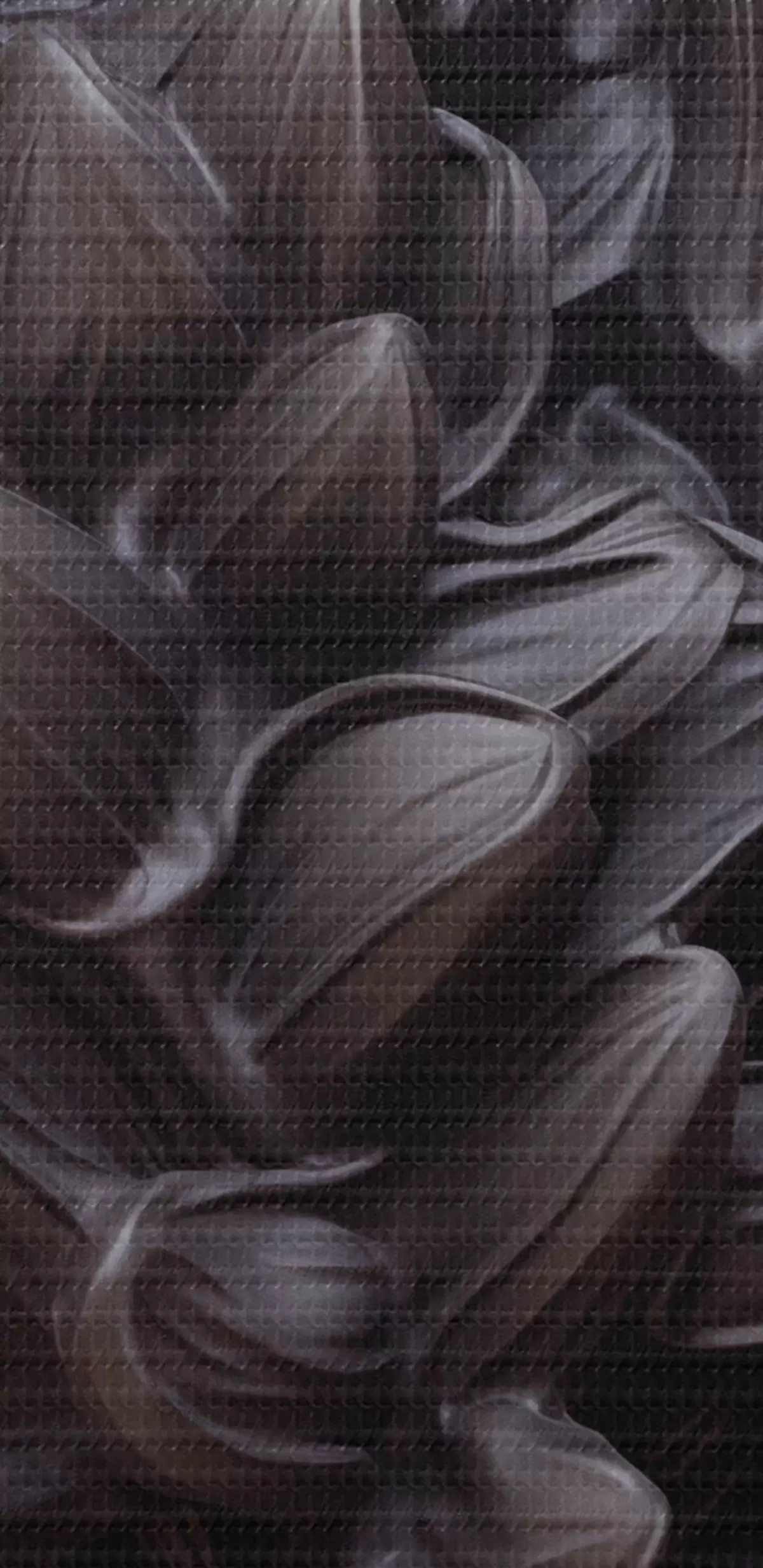 Smalkais diegu pinums uz šī audekla atgādina profesionālu mākslinieku audeklu virsmu.