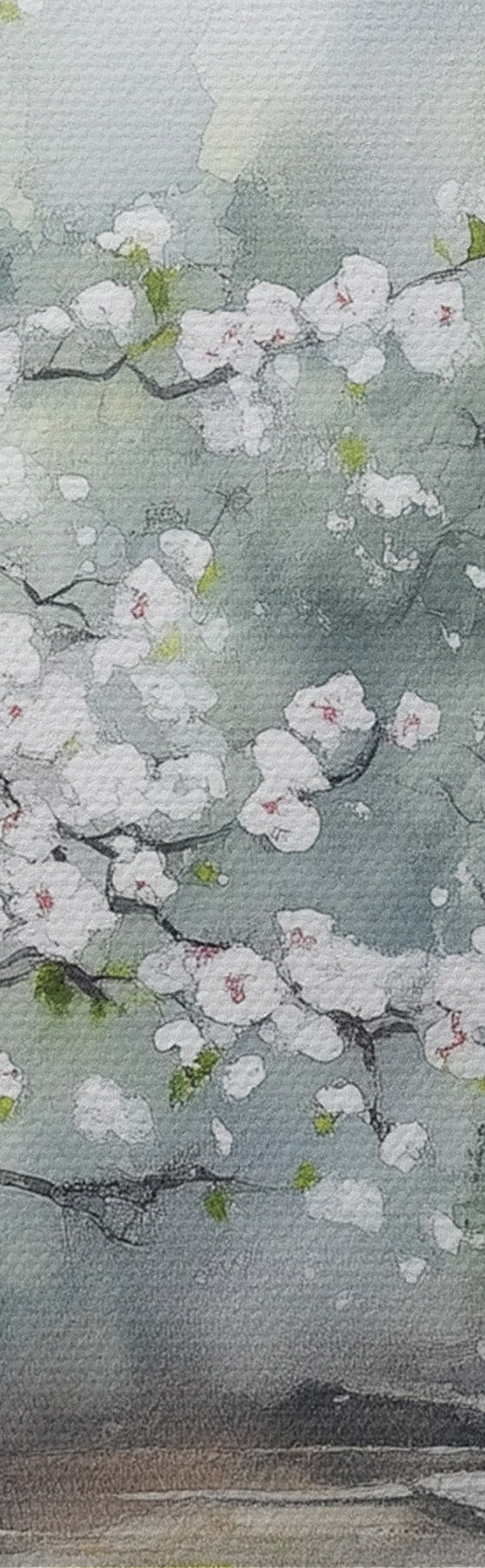 Glezna Japānas dārzs ar ķiršu koku un māju, austrumu, akvareļu stilā Nr s44309