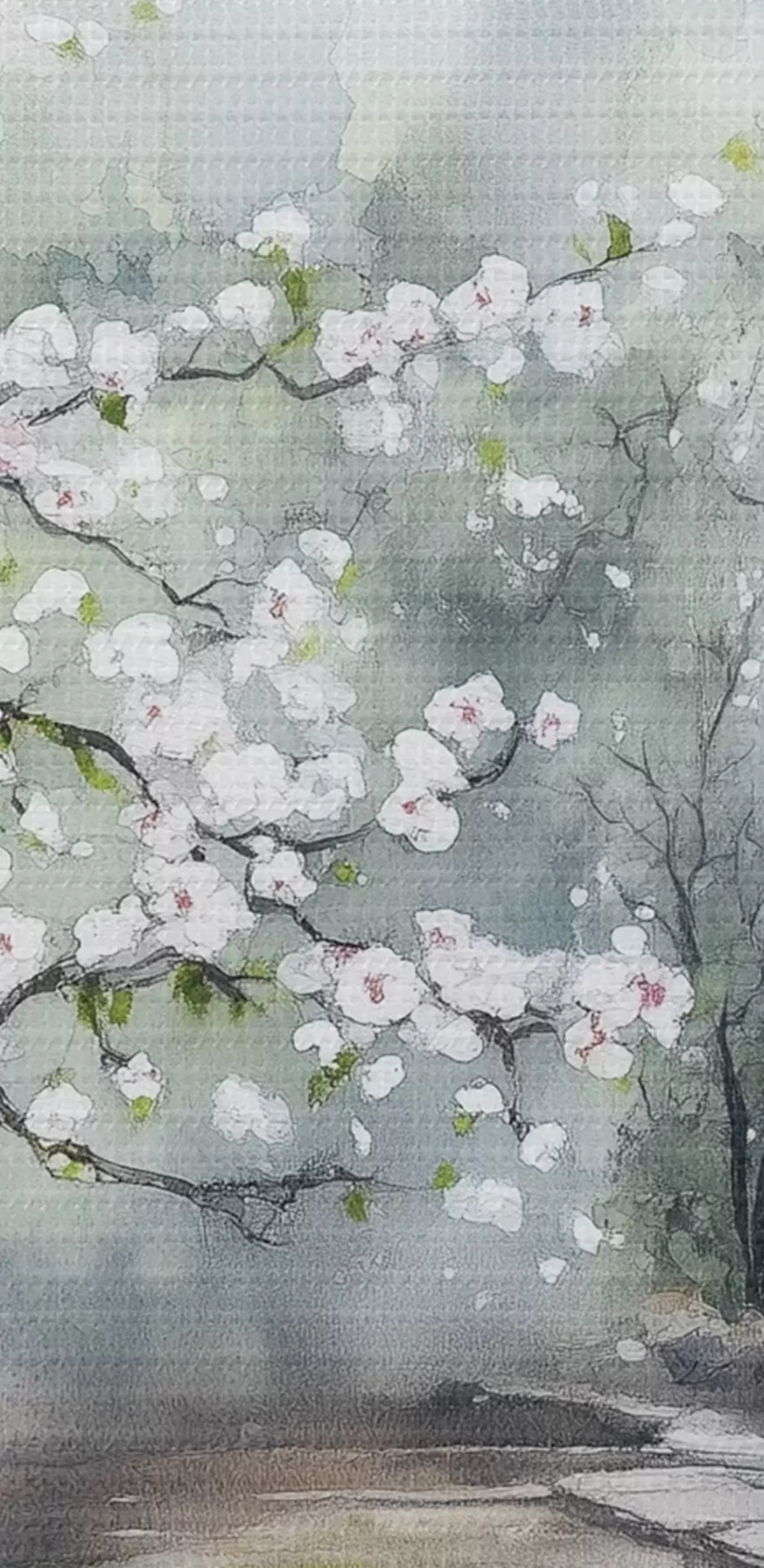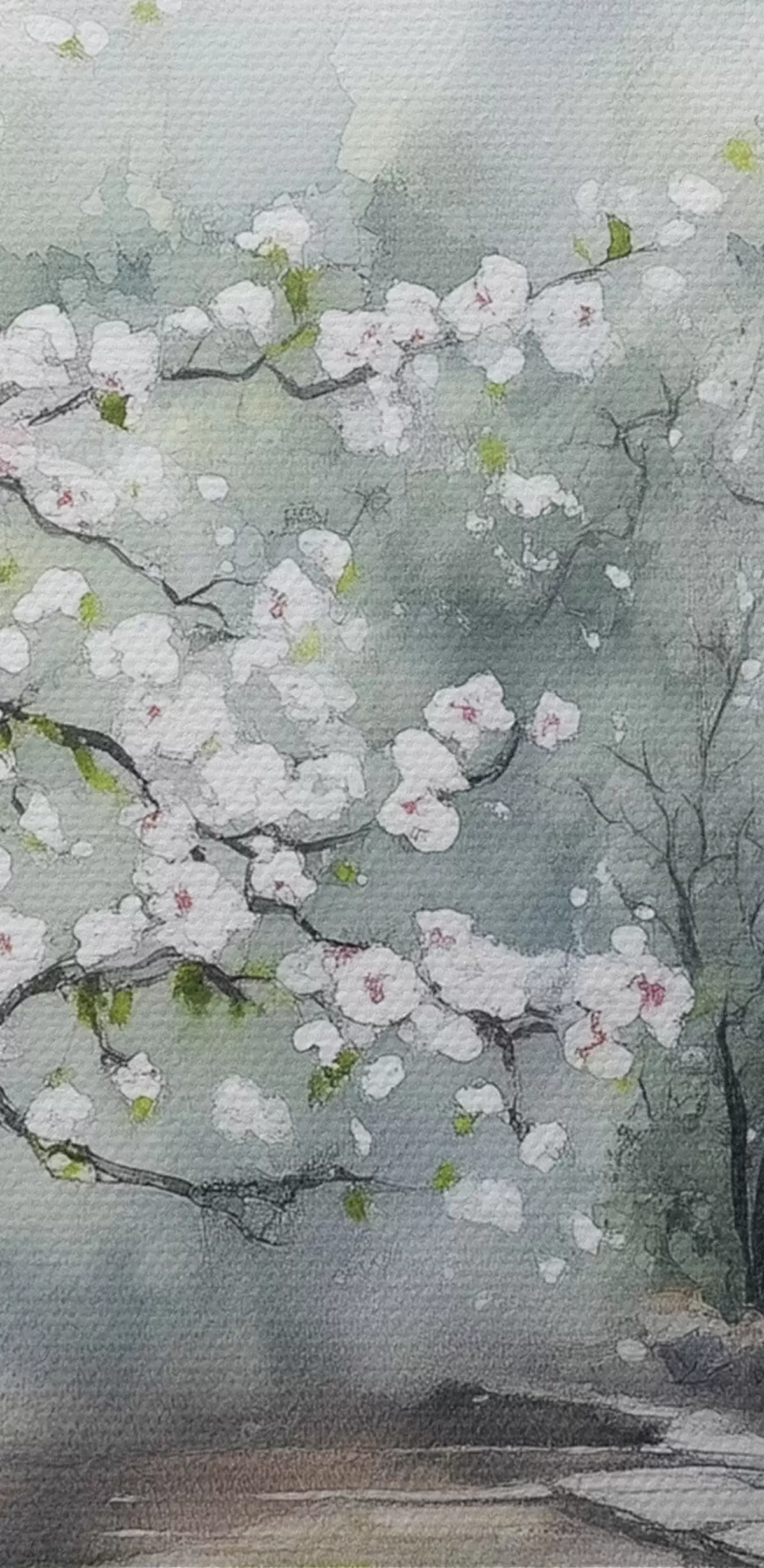Glezna Japānas dārzs ar ķiršu koku un māju, austrumu, akvareļu stilā Nr s44309