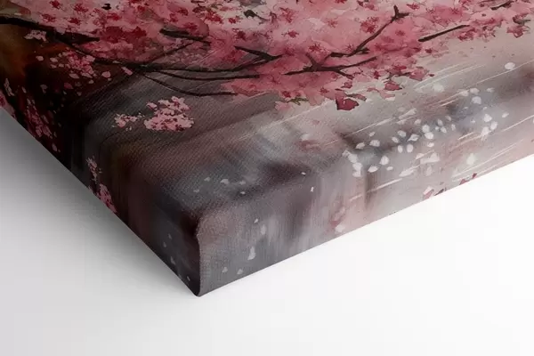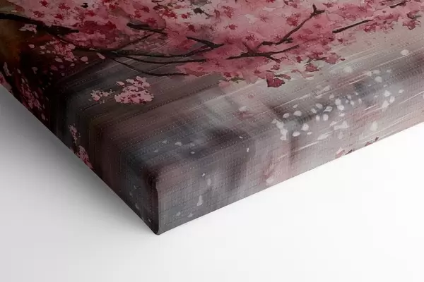 Glezna Skaista Japānas ainava ar ziedošu ķiršu koku un māju pie ezera Nr s44310