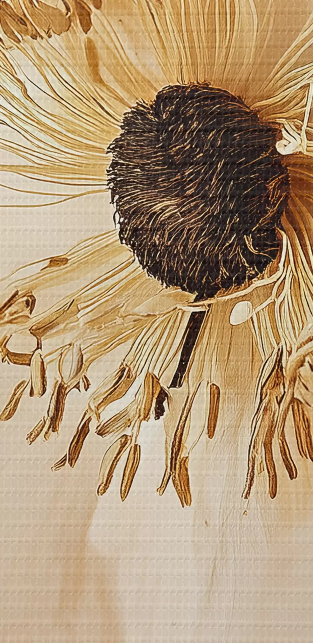 Smalkais diegu pinums uz šī audekla atgādina profesionālu mākslinieku audeklu virsmu.