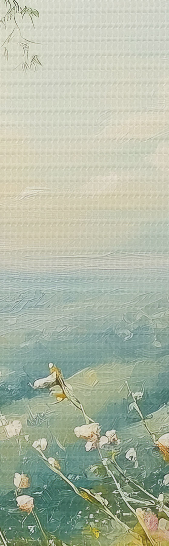 Smalkais diegu pinums uz šī audekla atgādina profesionālu mākslinieku audeklu virsmu.