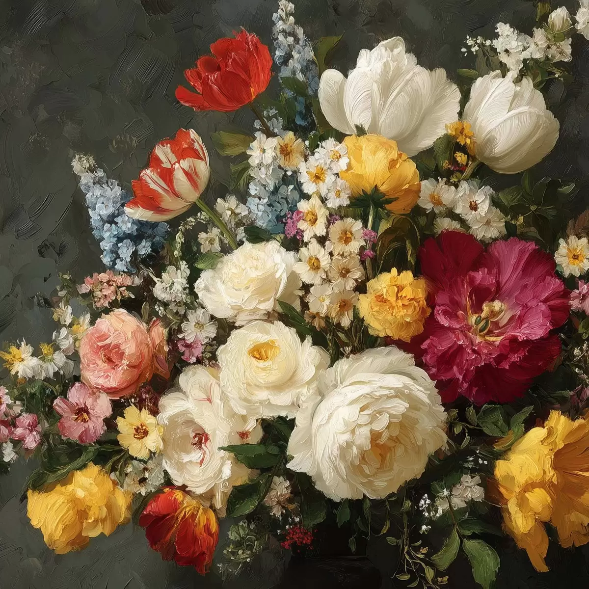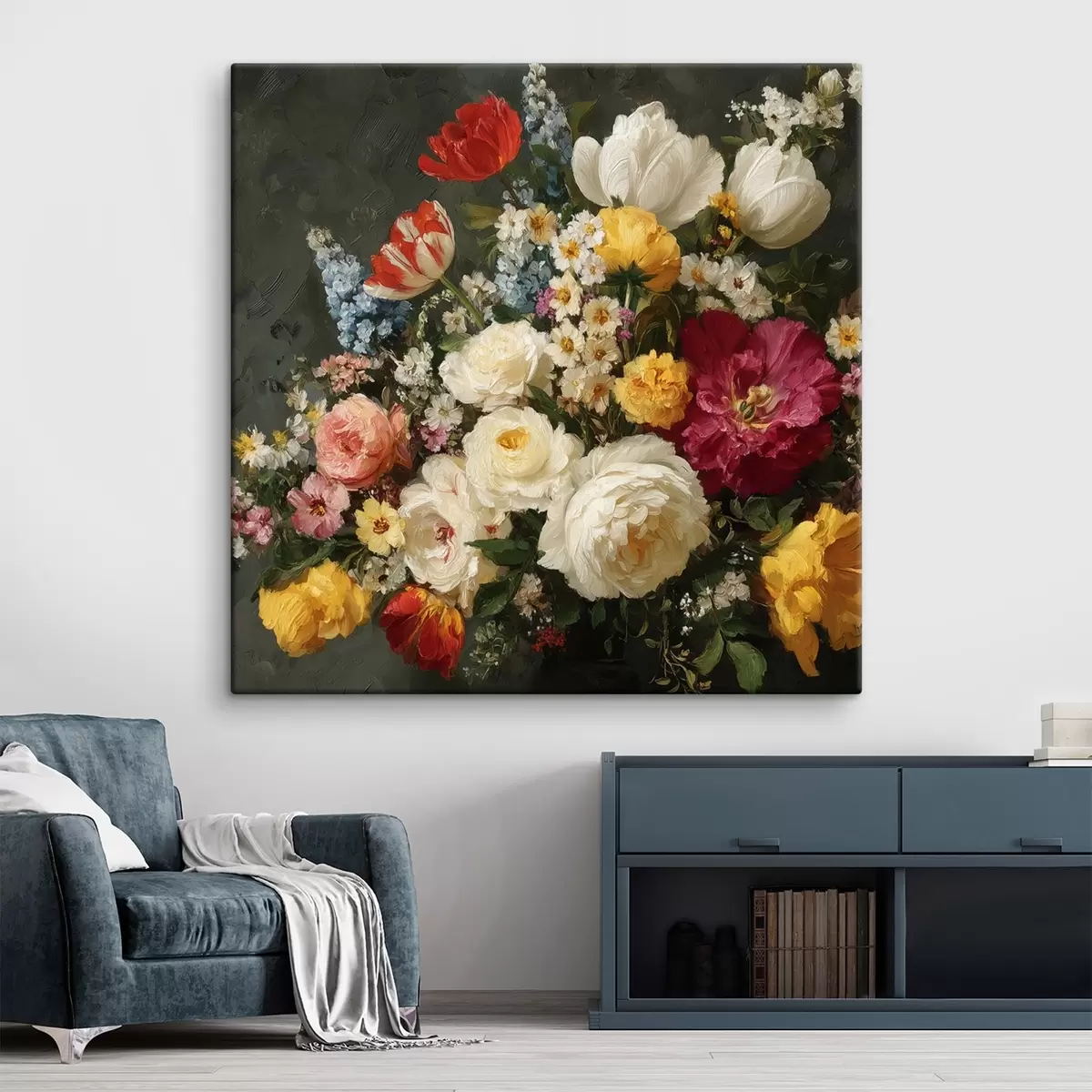 Glezna Dažādu ziedu pušķis ar bagātīgām nokrāsām s44334
