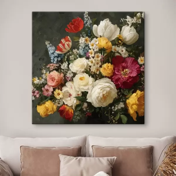 Glezna Dažādu ziedu pušķis ar bagātīgām nokrāsām s44334