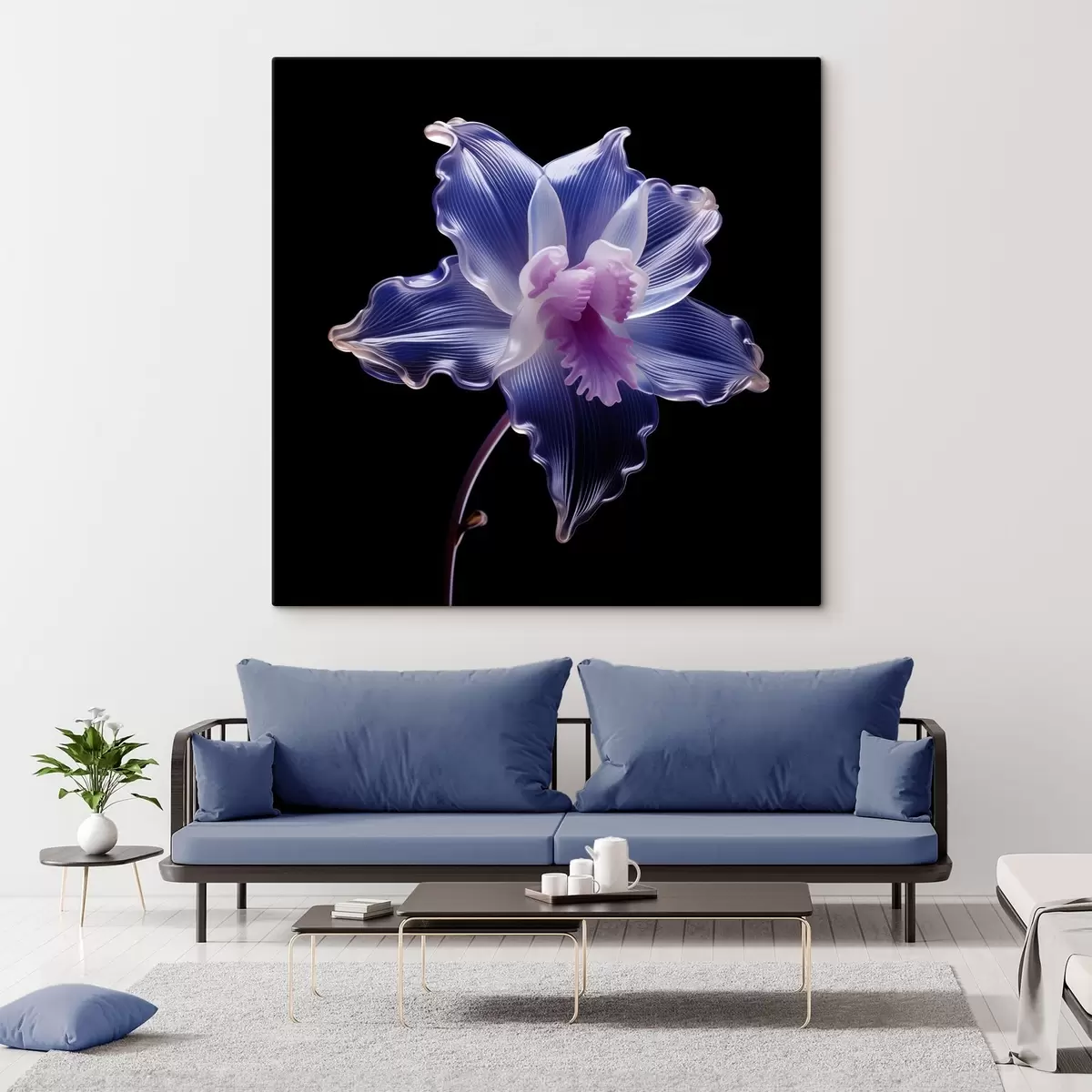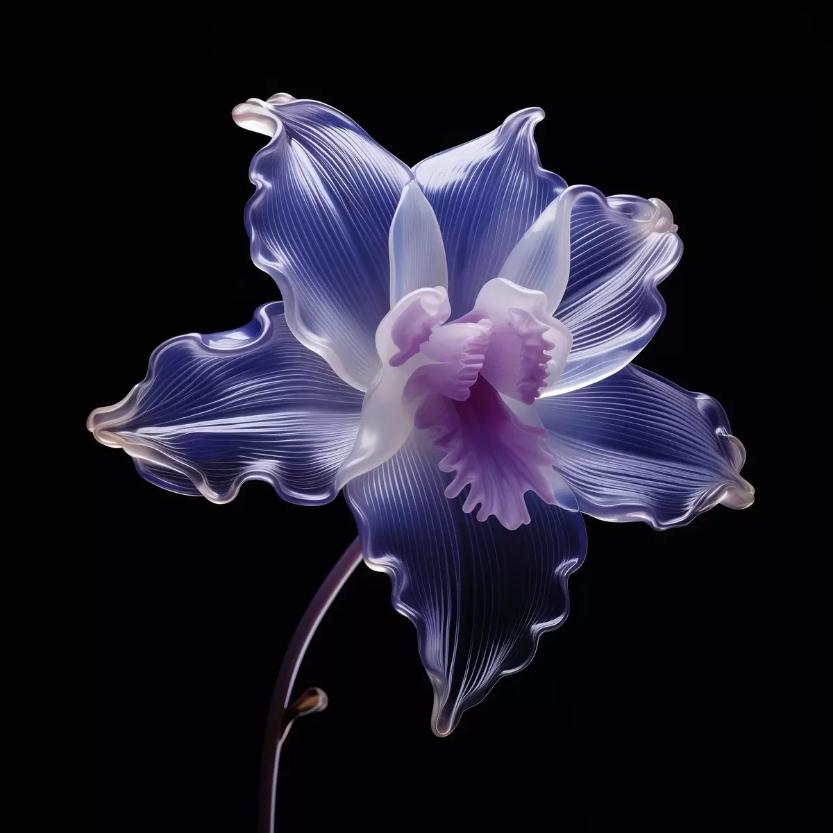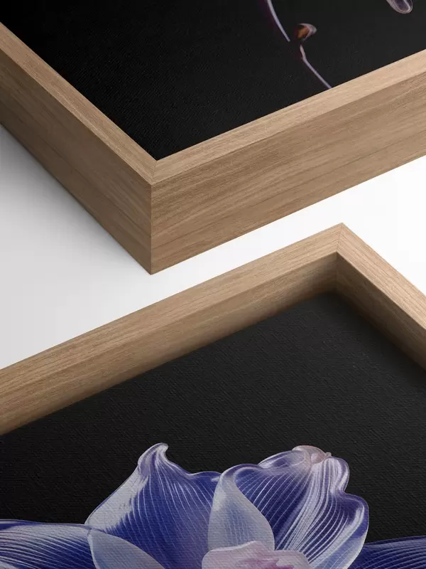Glezna Caurspīdīgi ziedlapiņas ar dzīslām uz melna fona Nr s44347