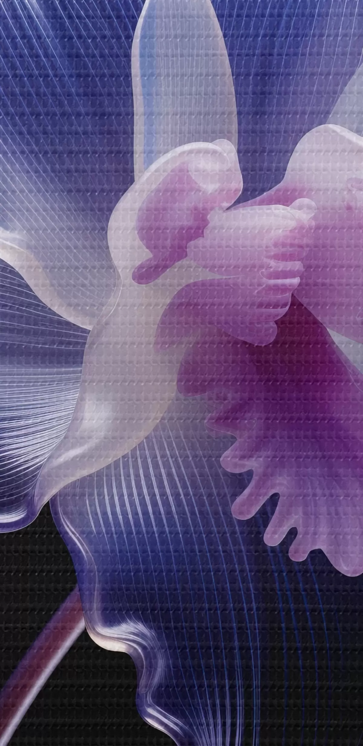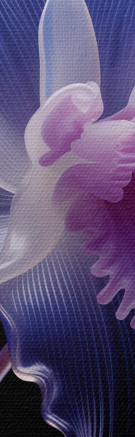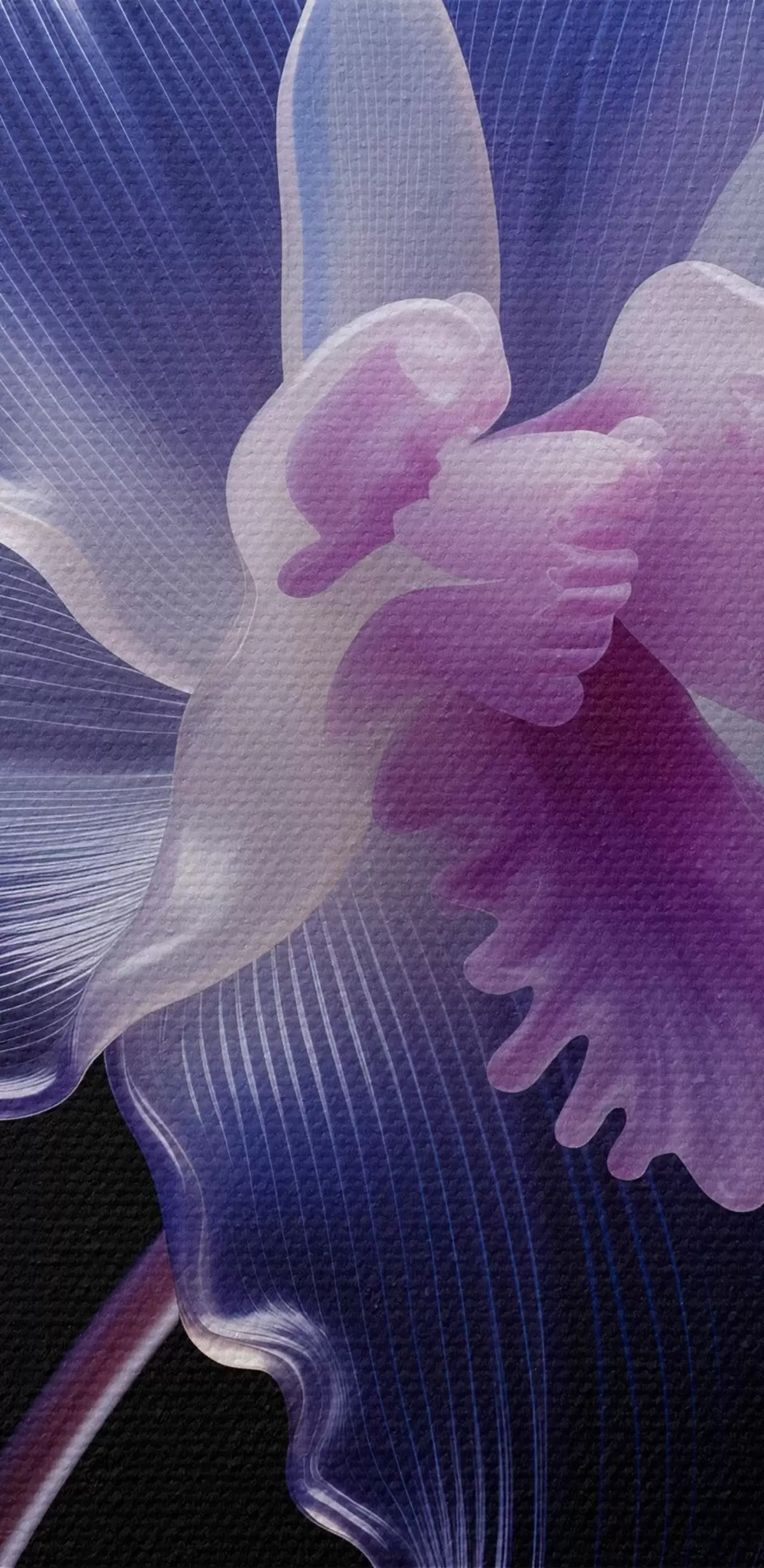 Glezna Caurspīdīgi ziedlapiņas ar dzīslām uz melna fona s44347