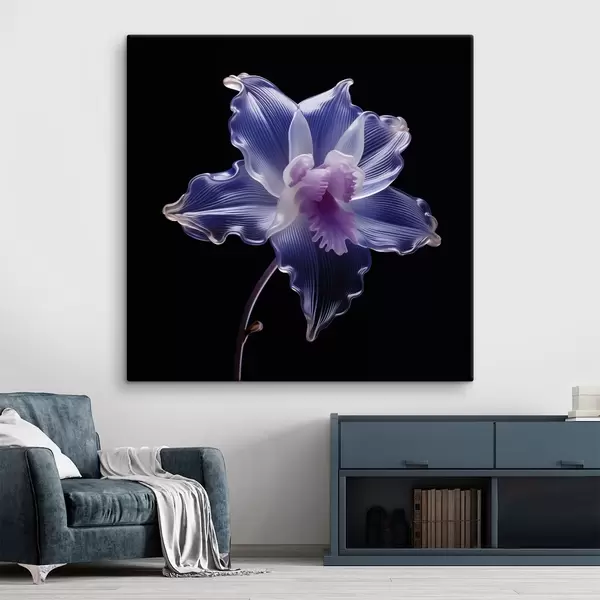 Glezna Caurspīdīgi ziedlapiņas ar dzīslām uz melna fona Nr s44347