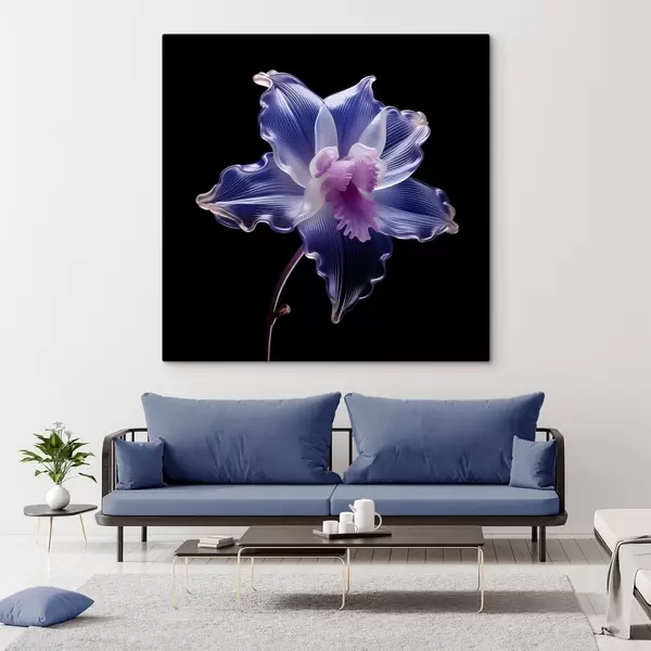 Glezna Caurspīdīgi ziedlapiņas ar dzīslām uz melna fona s44347