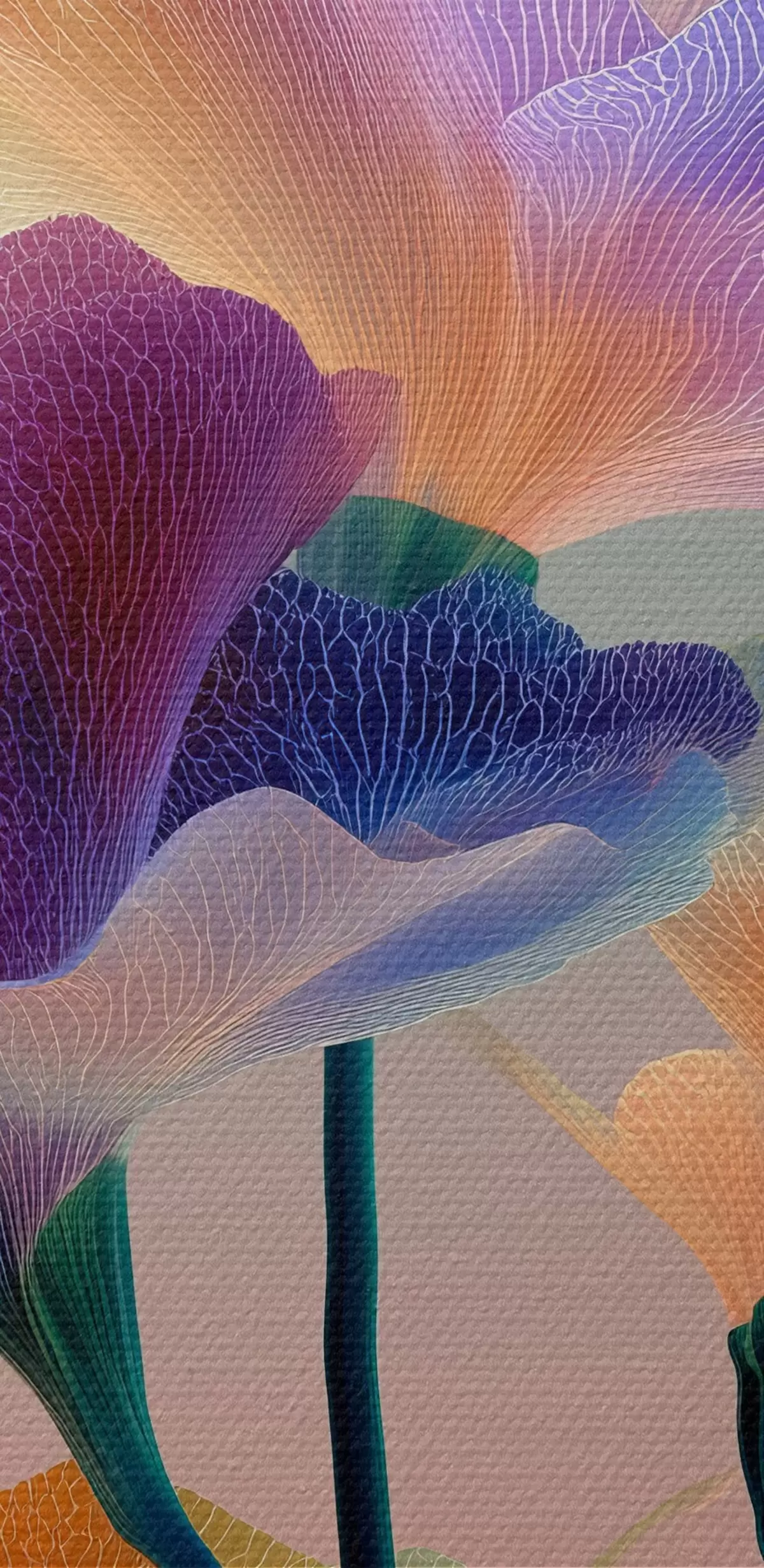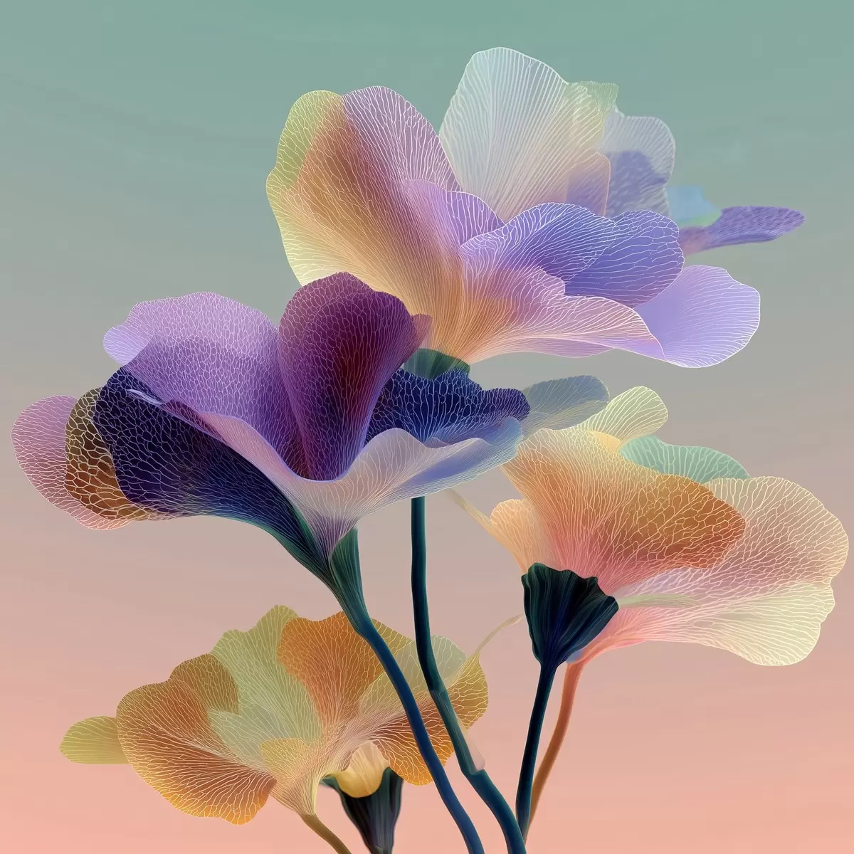 Glezna -Caurspīdīgi ziedi ar maigām dzīslām s44350