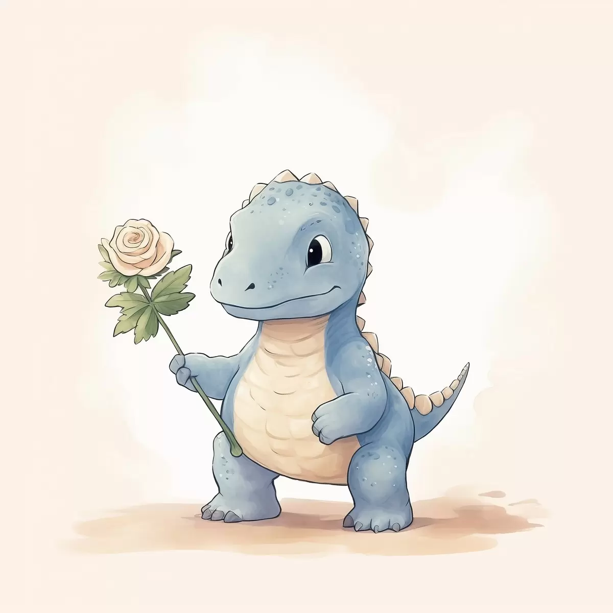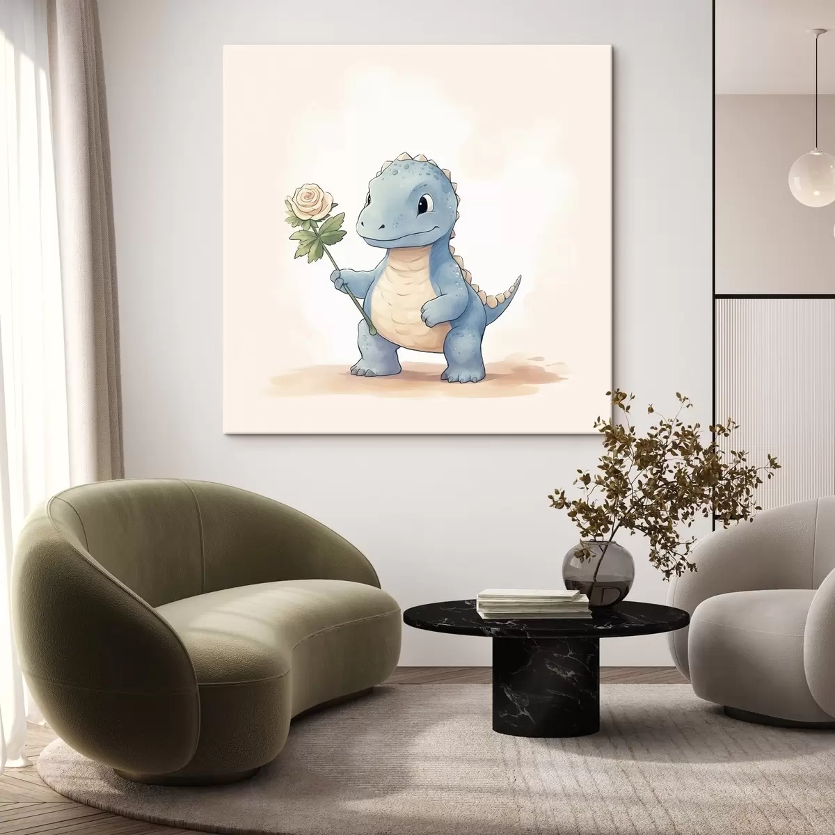 Glezna Mazs dinozaurs un maigs zieds s44351