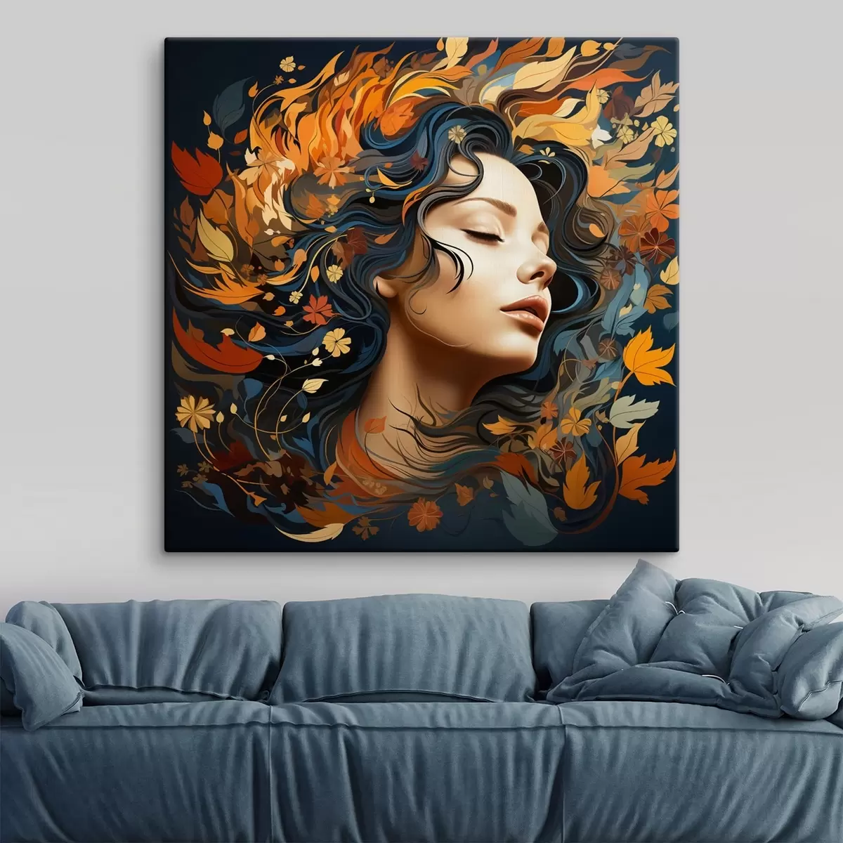 Glezna Meitene un krītošās lapas s44358
