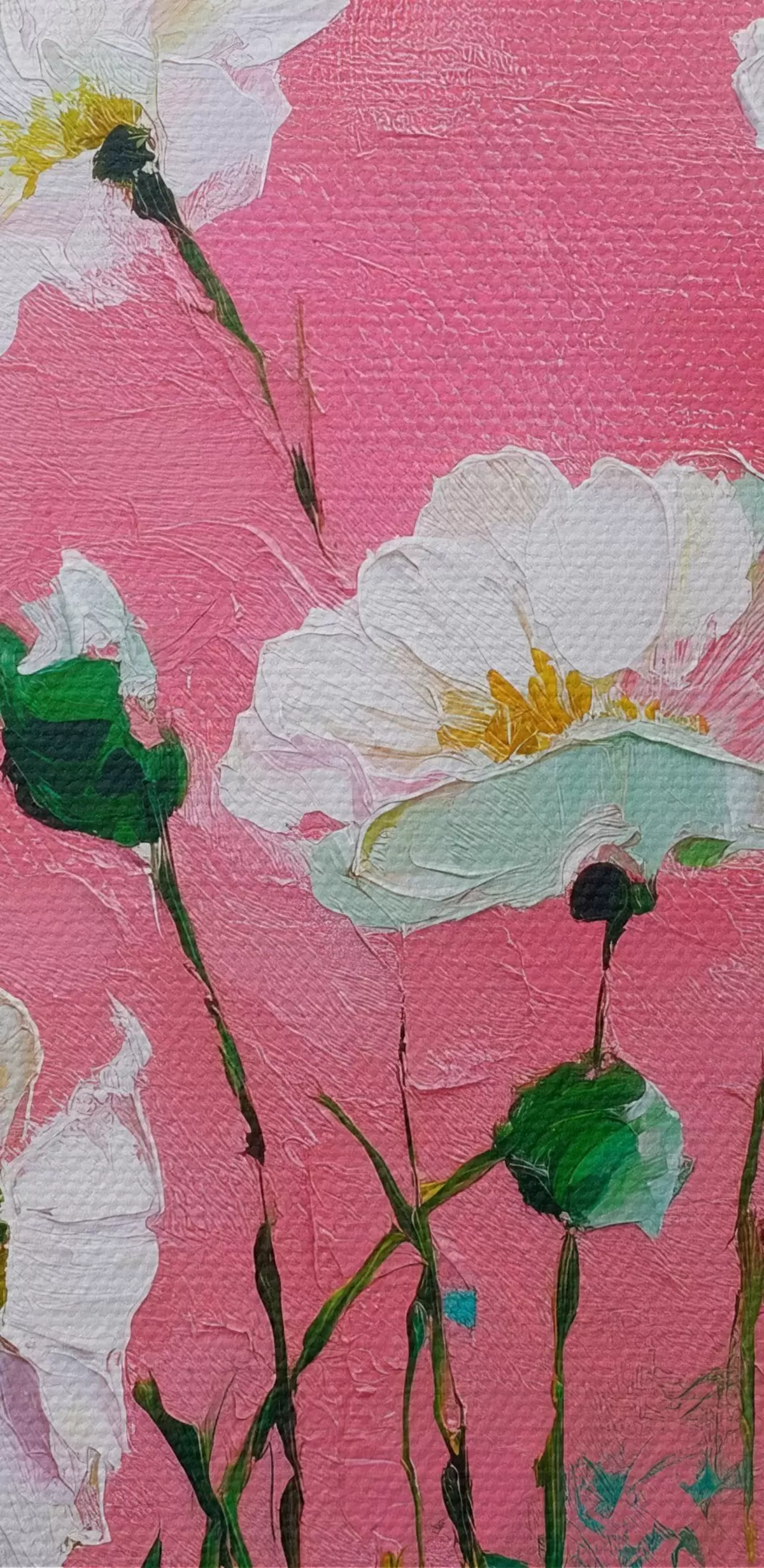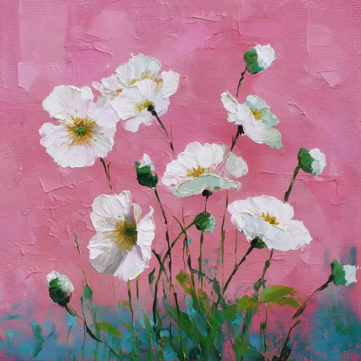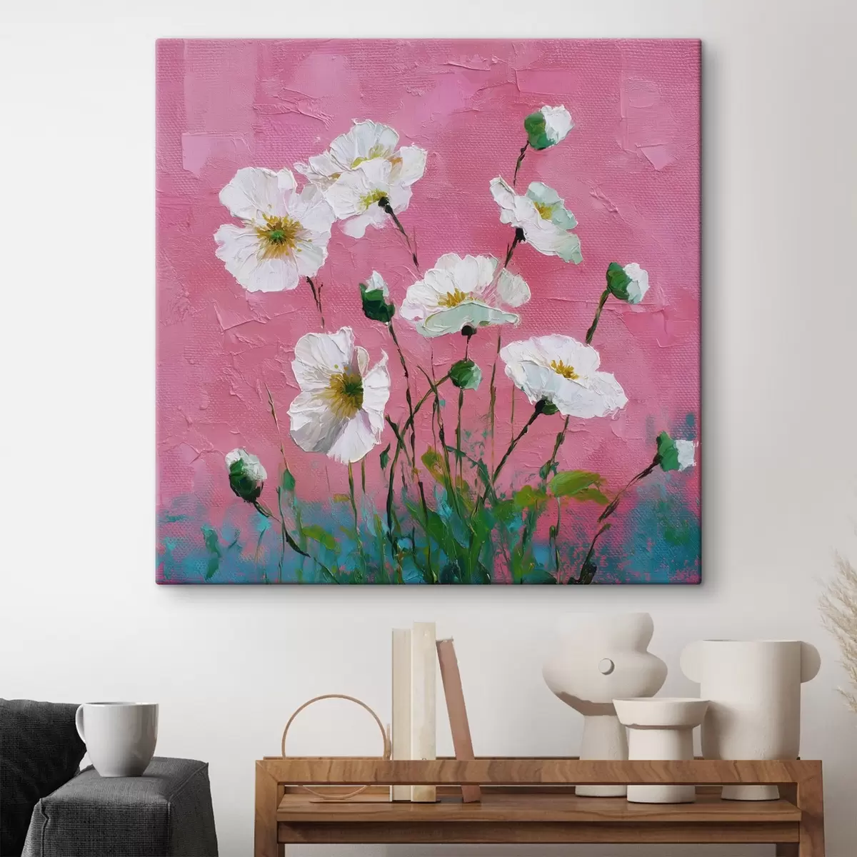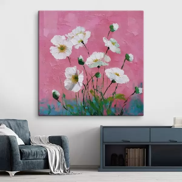 Glezna Balti ziedi uz rozā fona Nr s44360