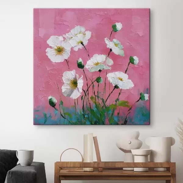 Glezna Balti ziedi uz rozā fona Nr s44360