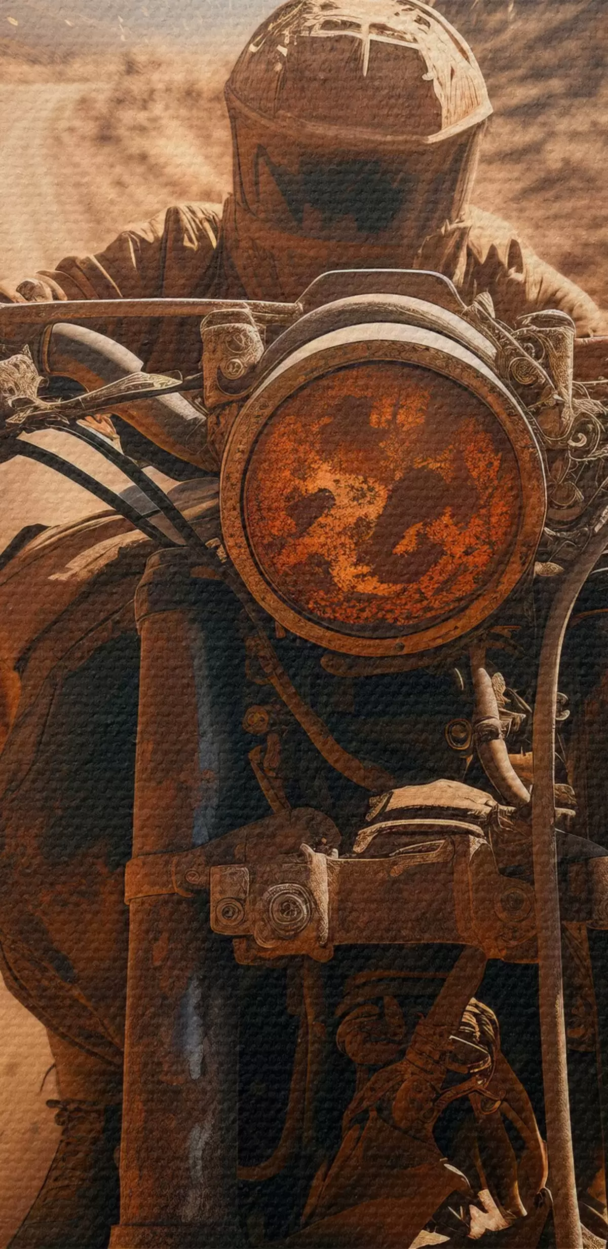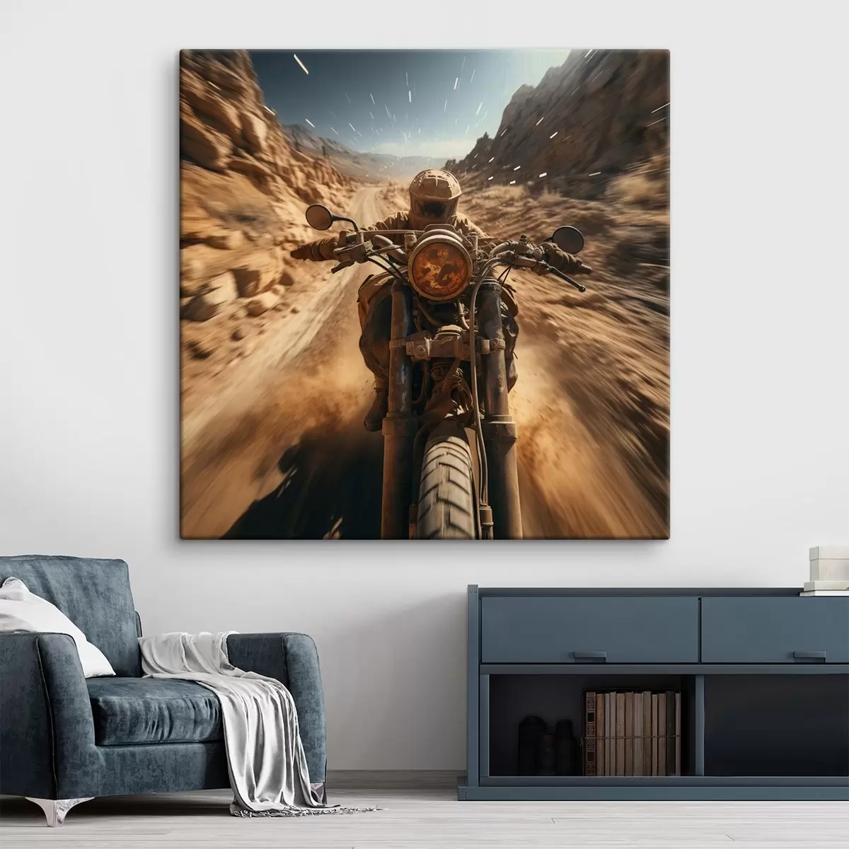 Glezna Motociklists, kas brauc ātri pa tuksneša ceļu Nr s44361