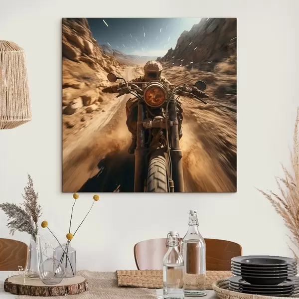 Glezna Motociklists, kas brauc ātri pa tuksneša ceļu Nr s44361
