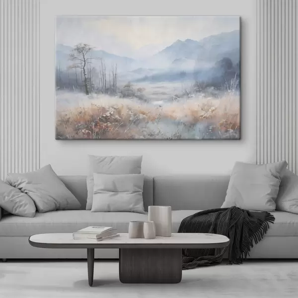 Glezna Teksturēta ainava ar kalniem, sausu zāli un mežu, pieklusinātas krāsas Nr s44402